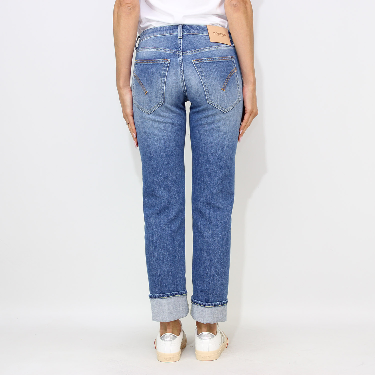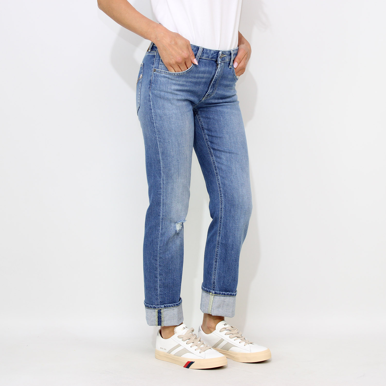 Jeans slim Coco in denim stretch lavaggio medio chiaro con rottura