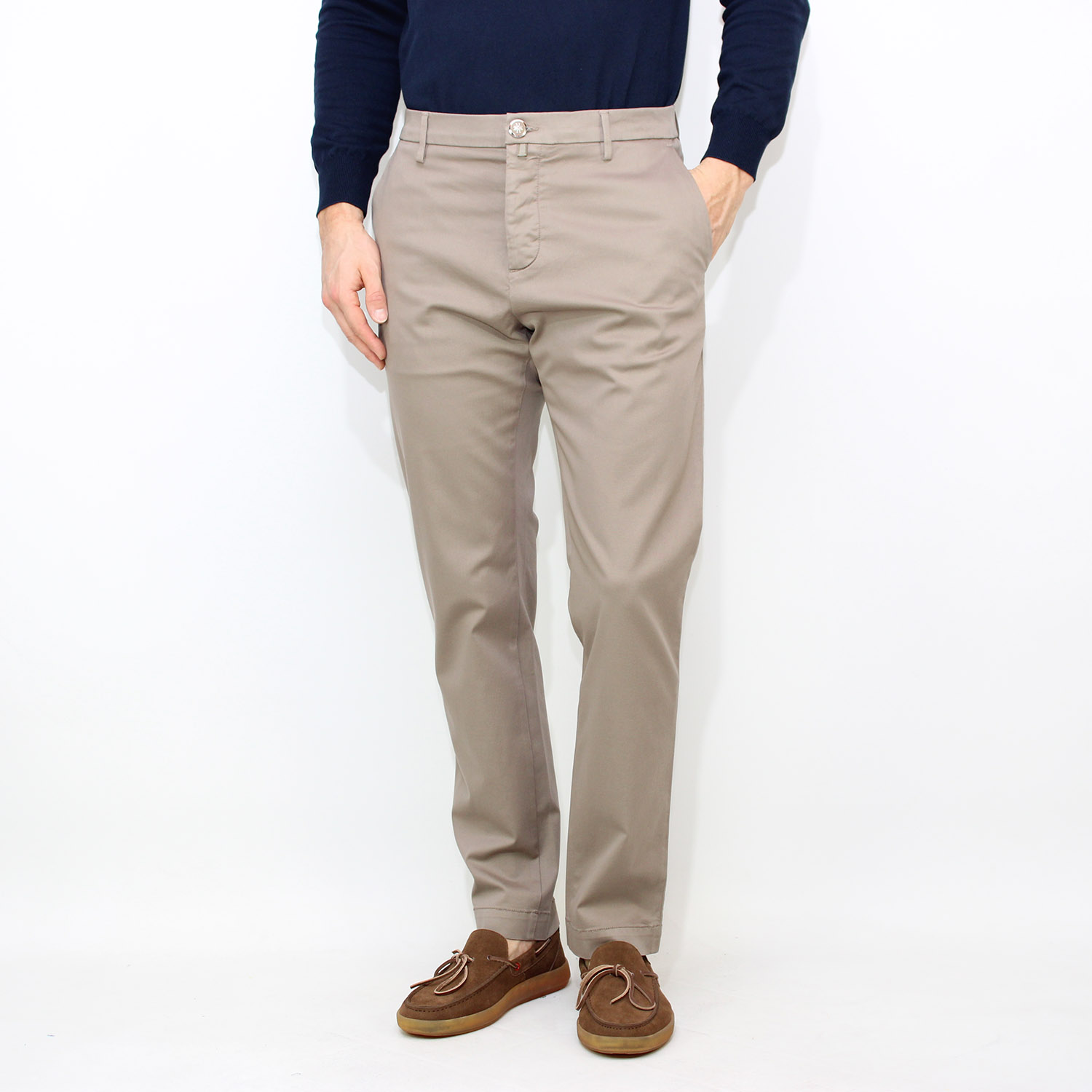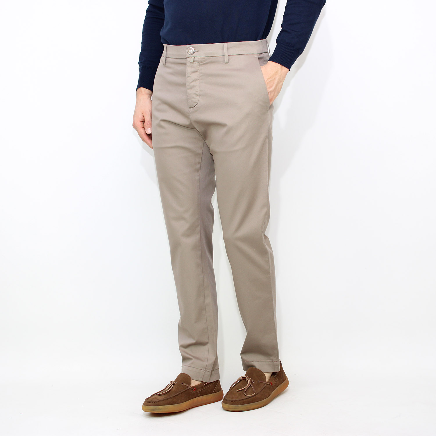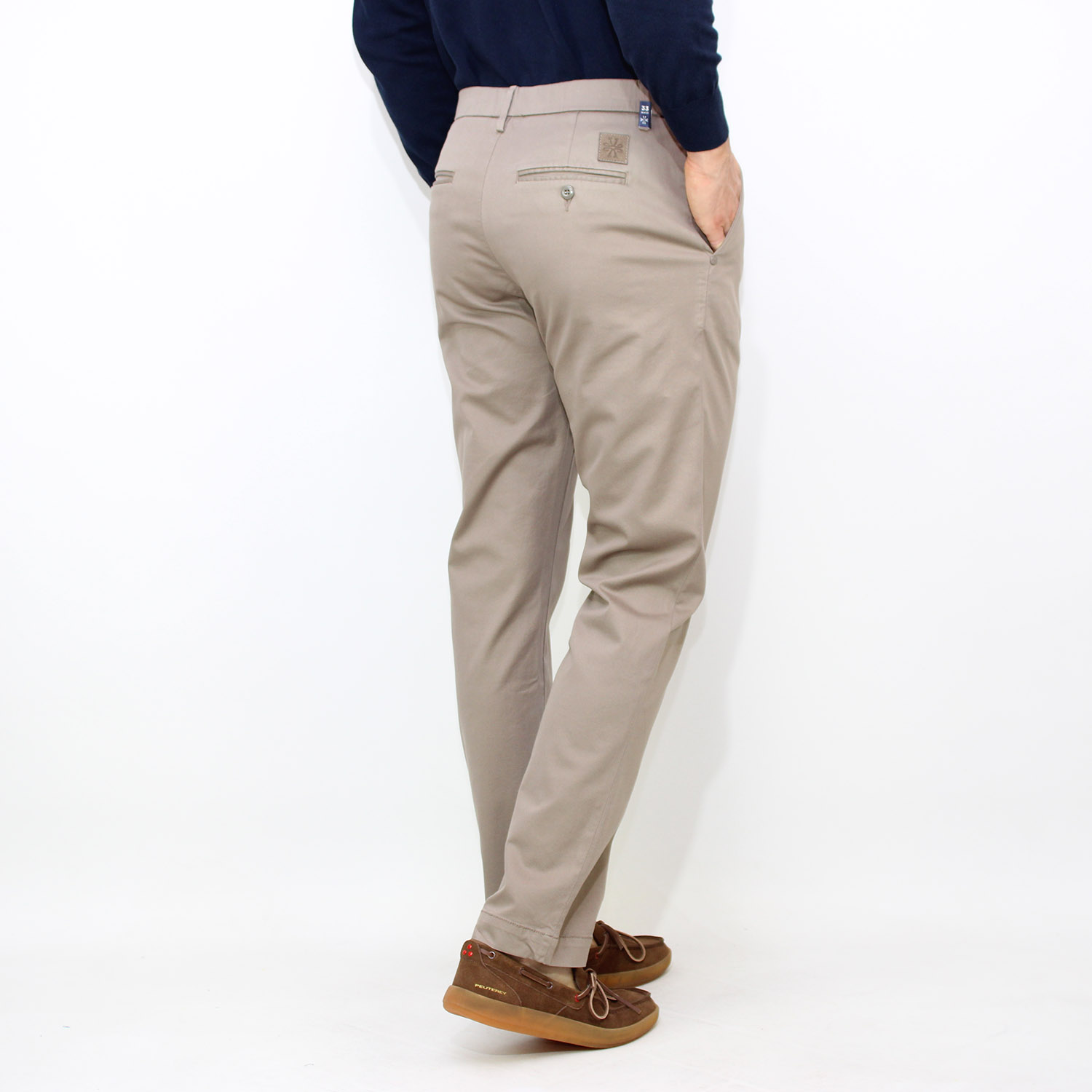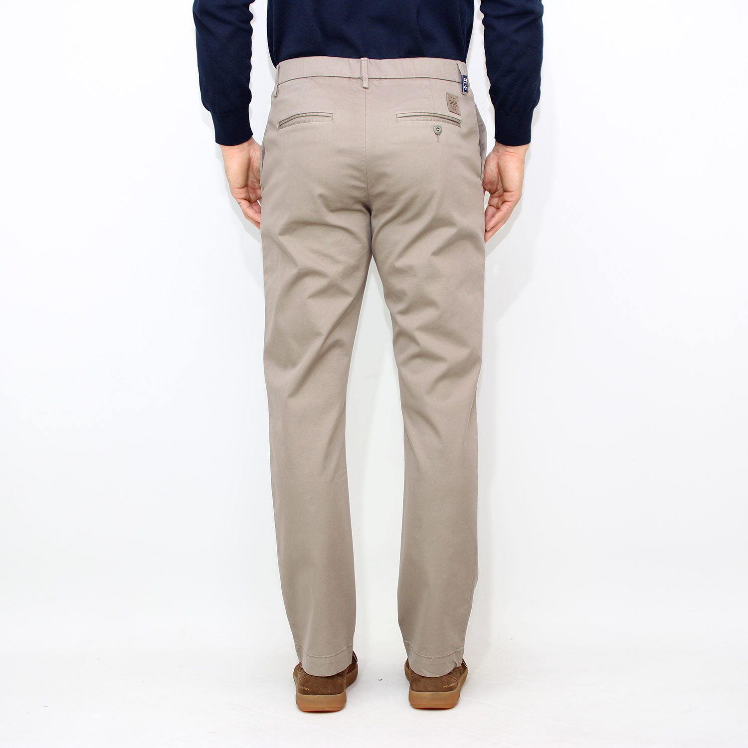 Tasche posteriori a filetto con asola e bottone.