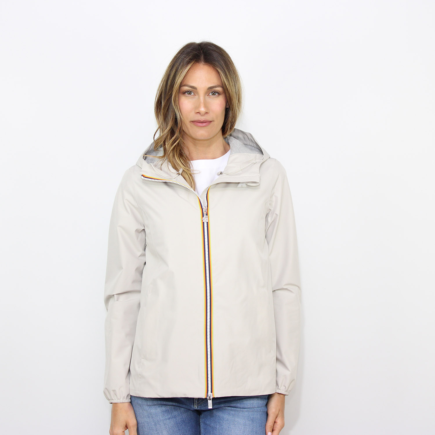 Punto vita decorato con l’iconico tape multicolor K-Way per una nota distintiva e di carattere.