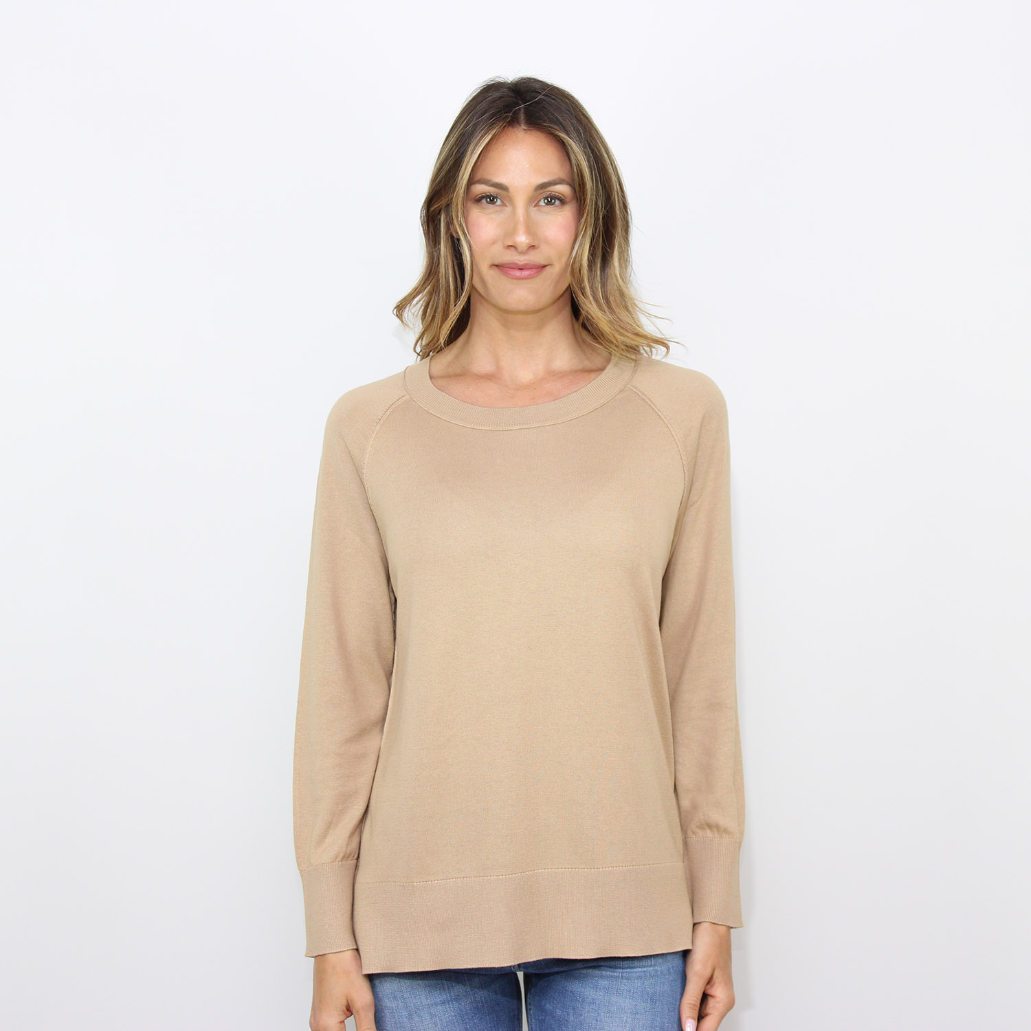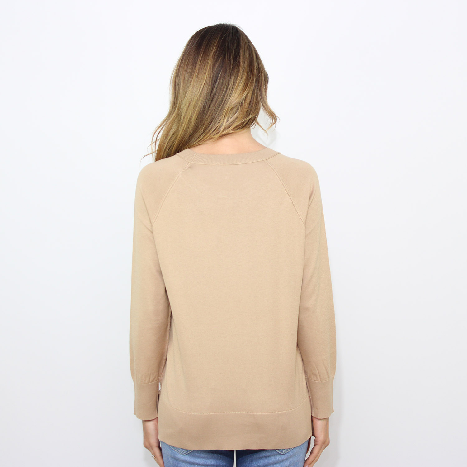 Maglia raglan scollo barchetta in seta cotone cappuccino