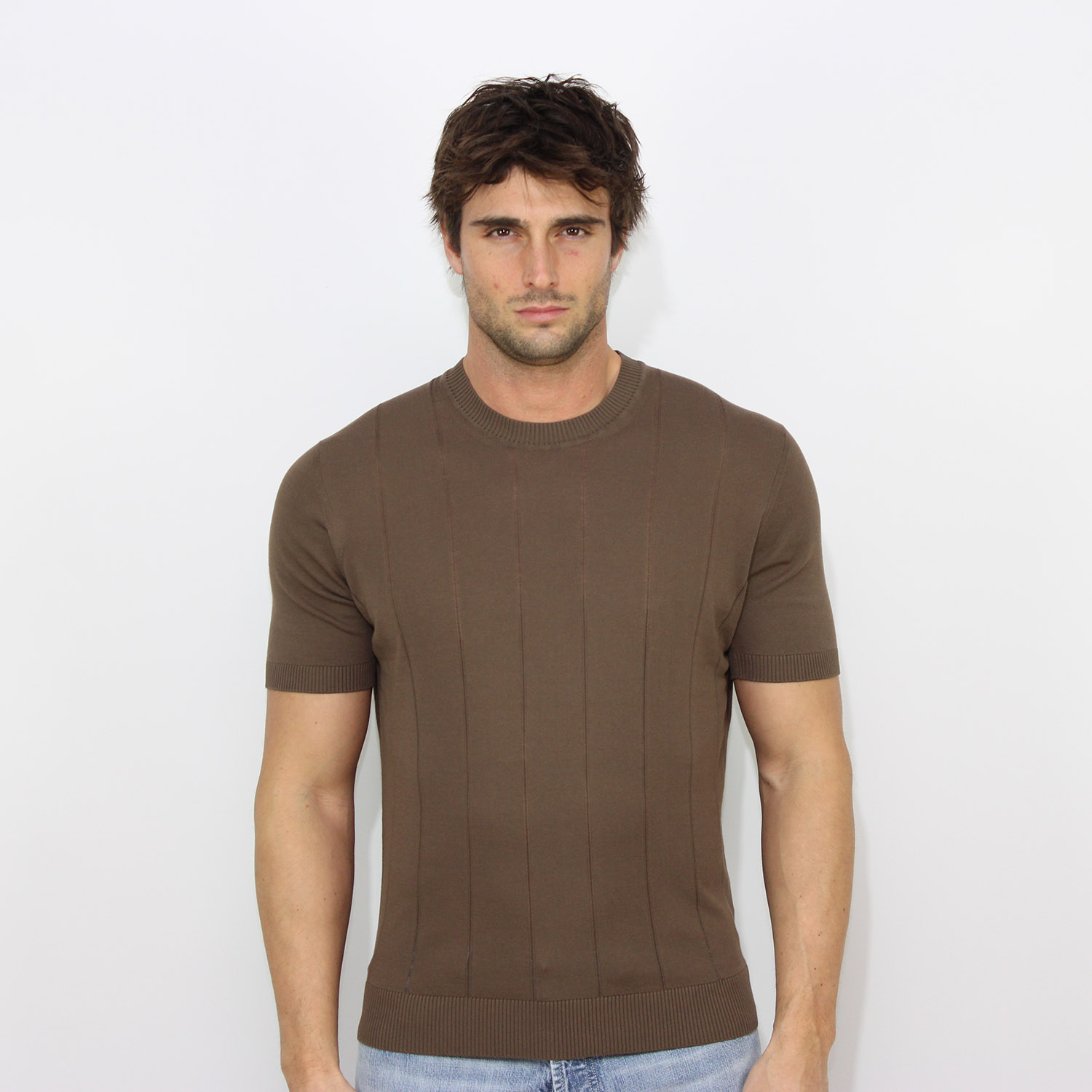 T-shirt in filo a coste piatte caffè
