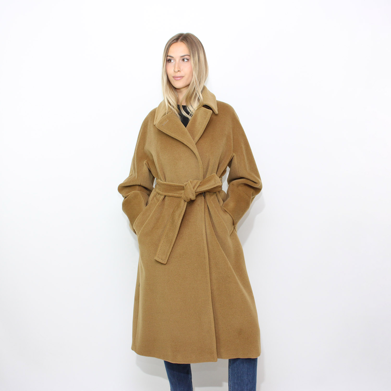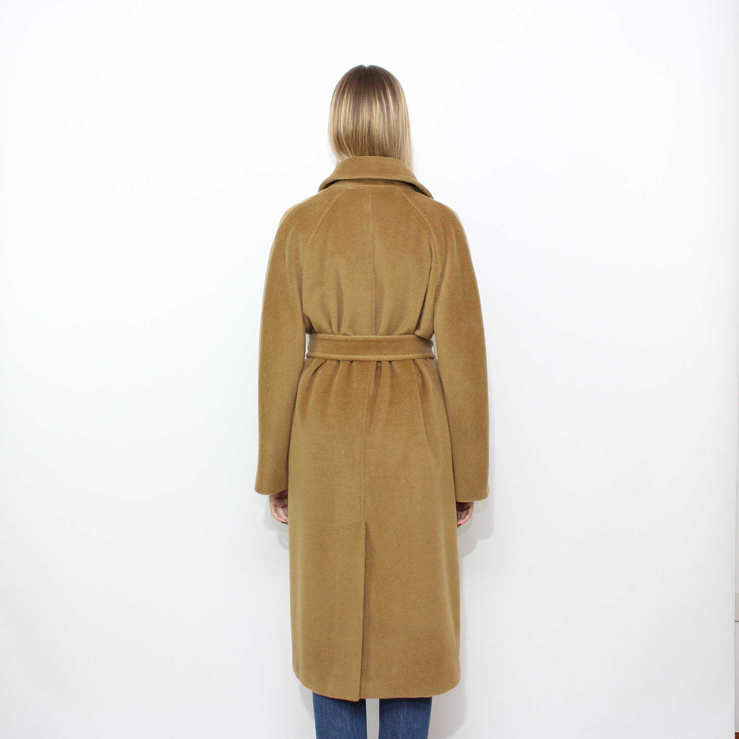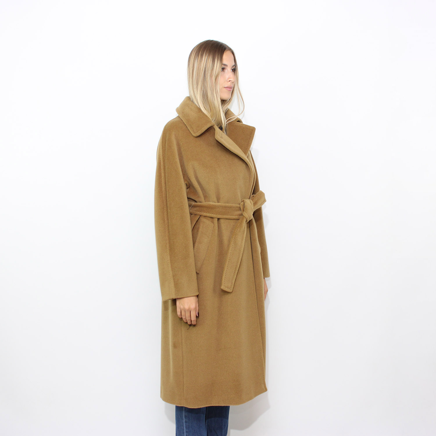 Chiusura con abbottonatura doppiopetto e cintura.