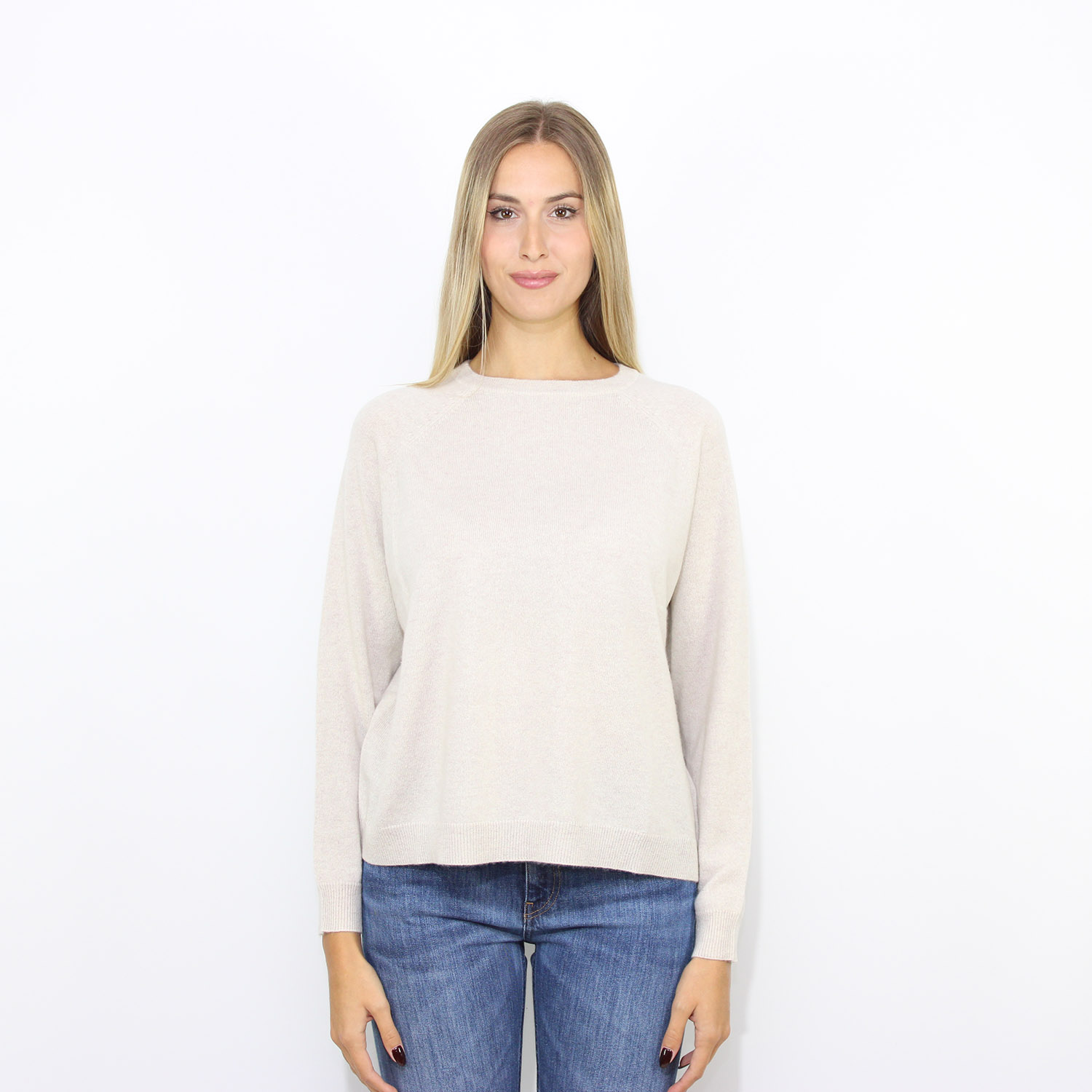 Maglia Tesa girocollo over puro cashmere beige