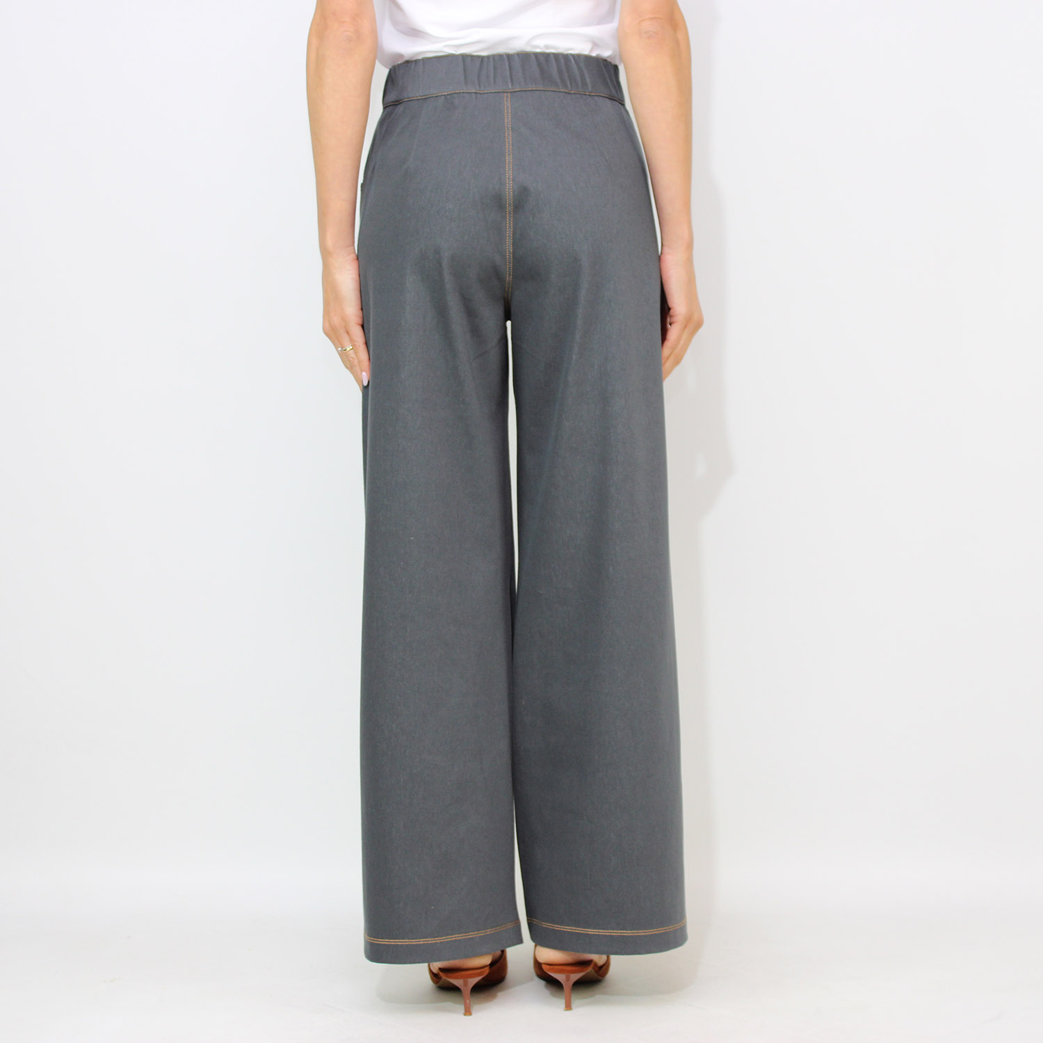 Pantalone con pieghe Sarta in jersey effetto denim piombo