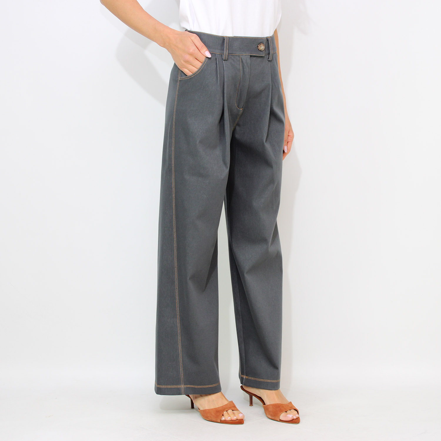 Recensisci per primo “Pantalone con pieghe Sarta in jersey effetto denim piombo”