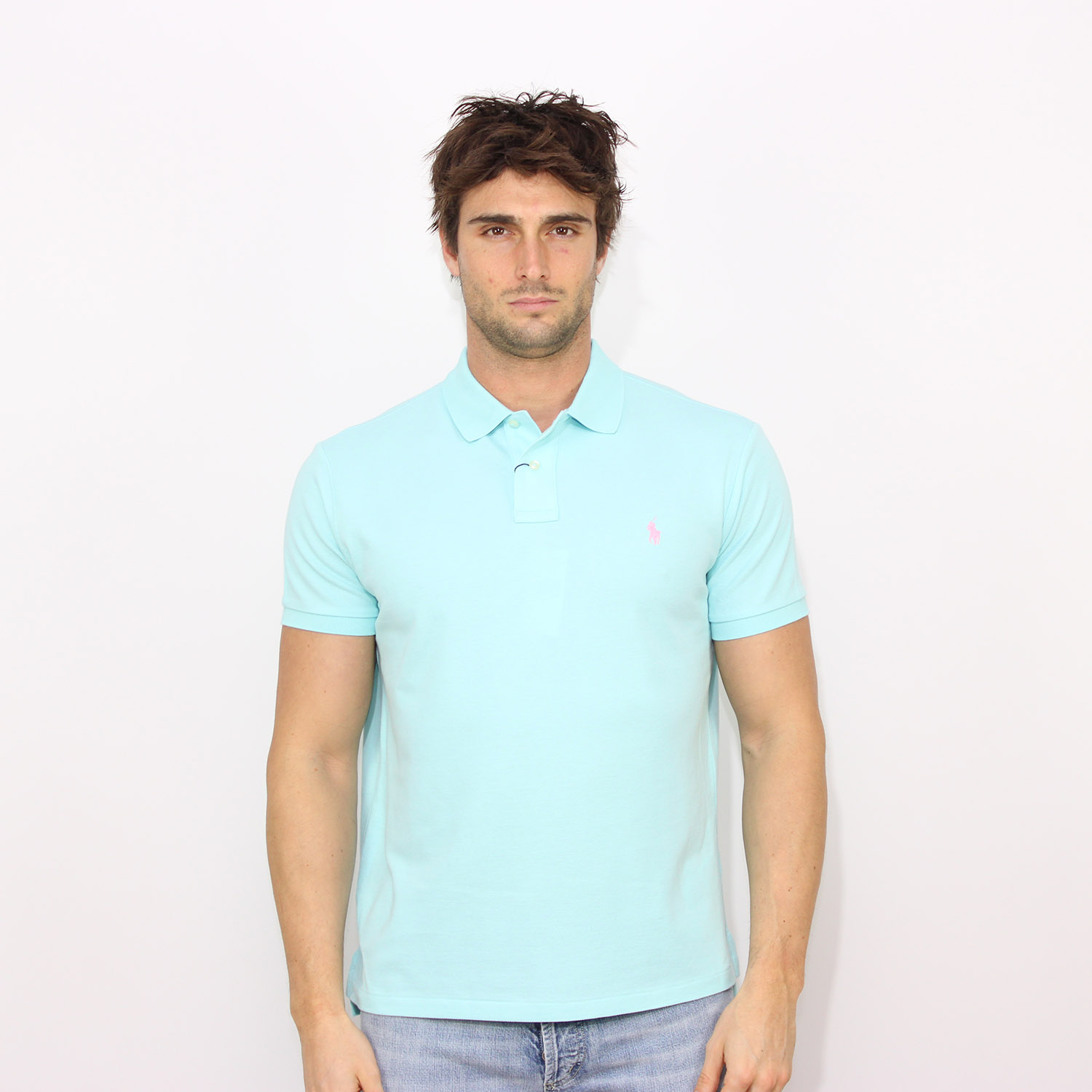 Polo in piquet custom slim new aqua