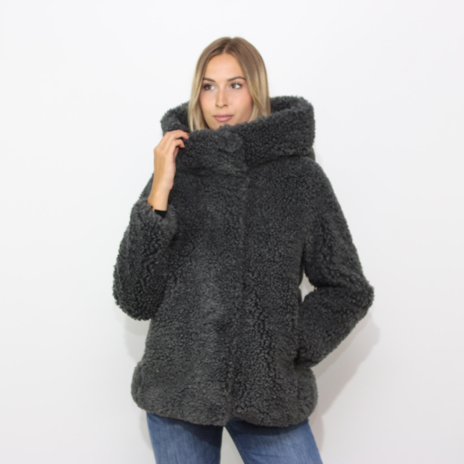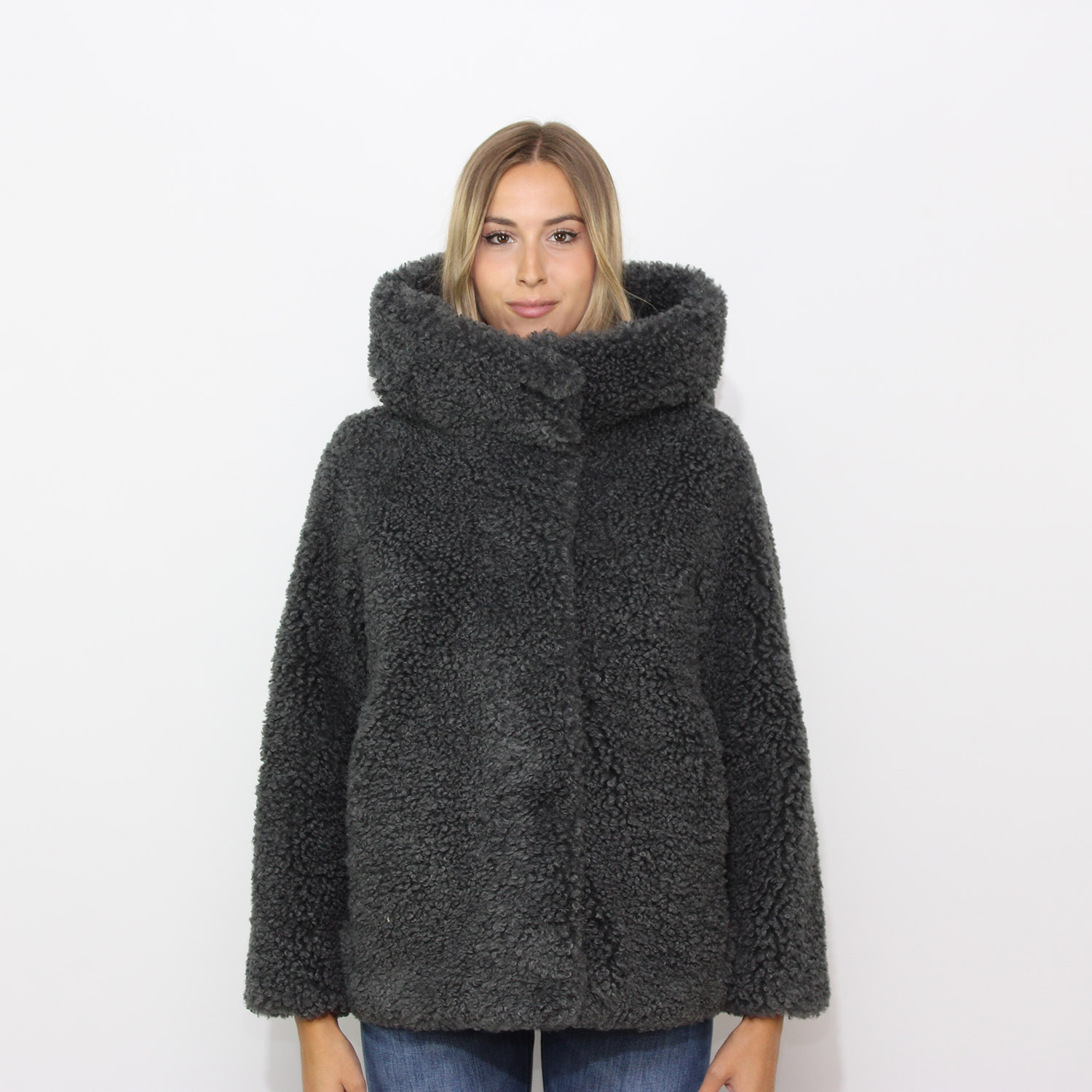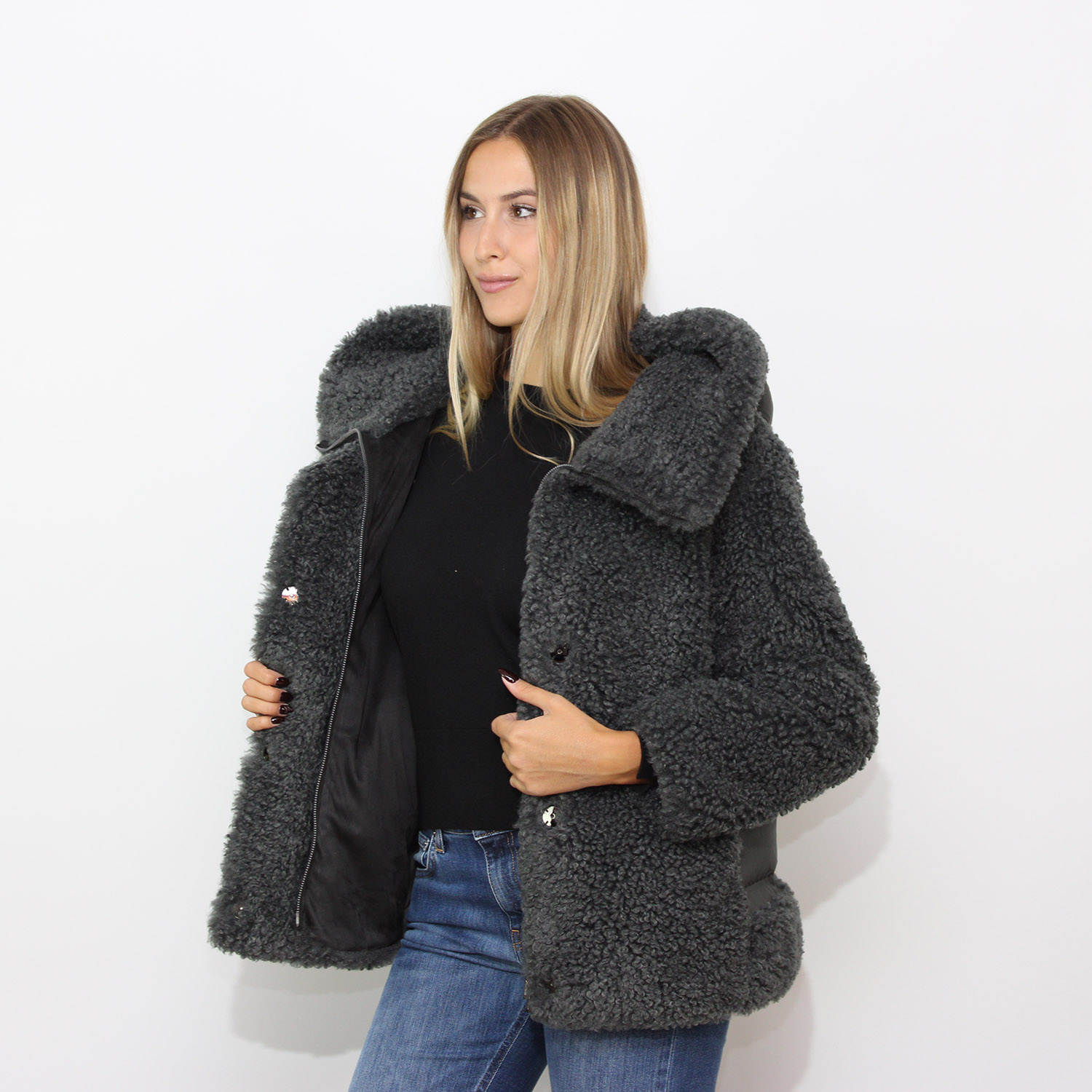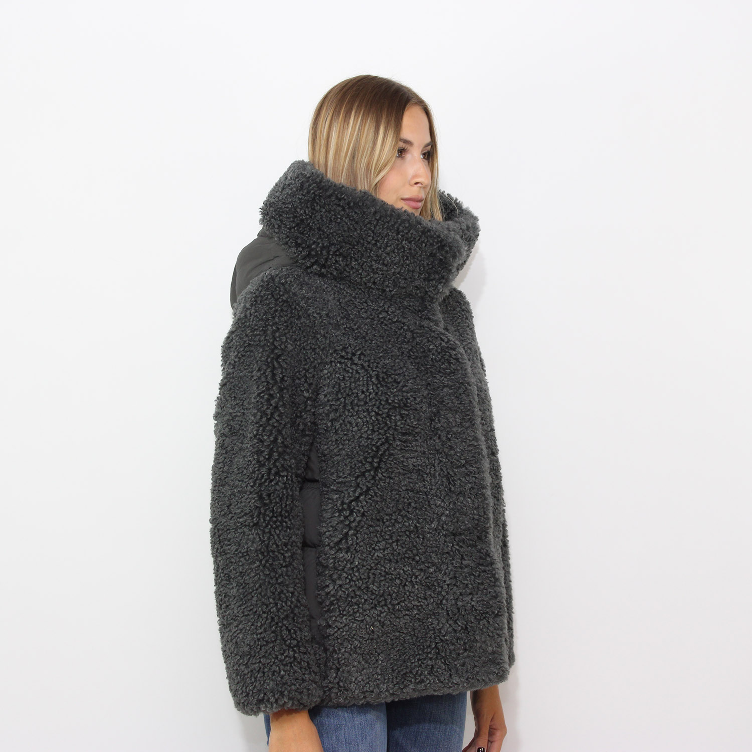 Costruzione originale del davanti e delle maniche, impreziositi dalla eco pelliccia teddy calda e avvolgente.