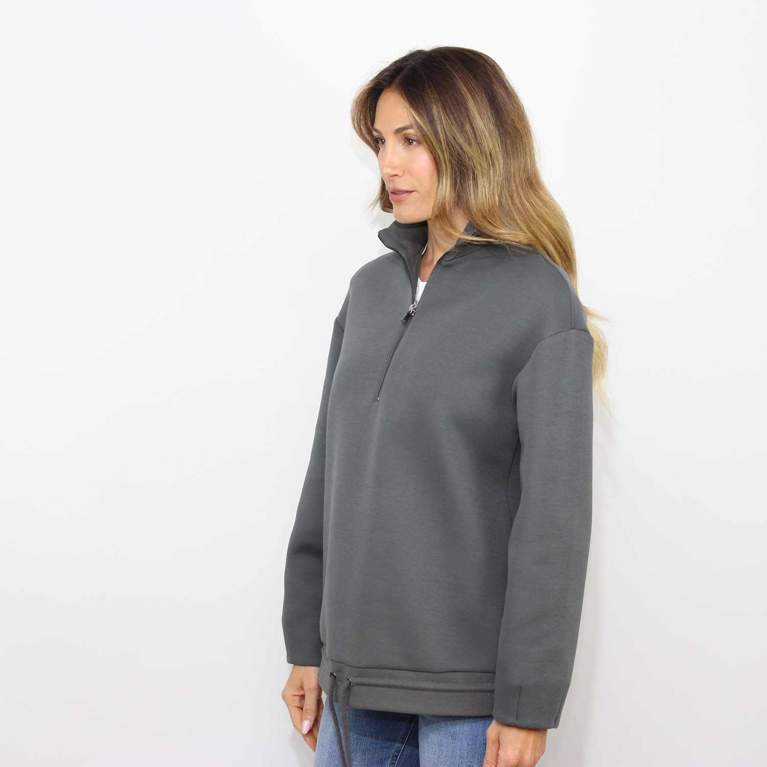 MMFelpa Madia mezza zip in doppio jersey tecnico piombo