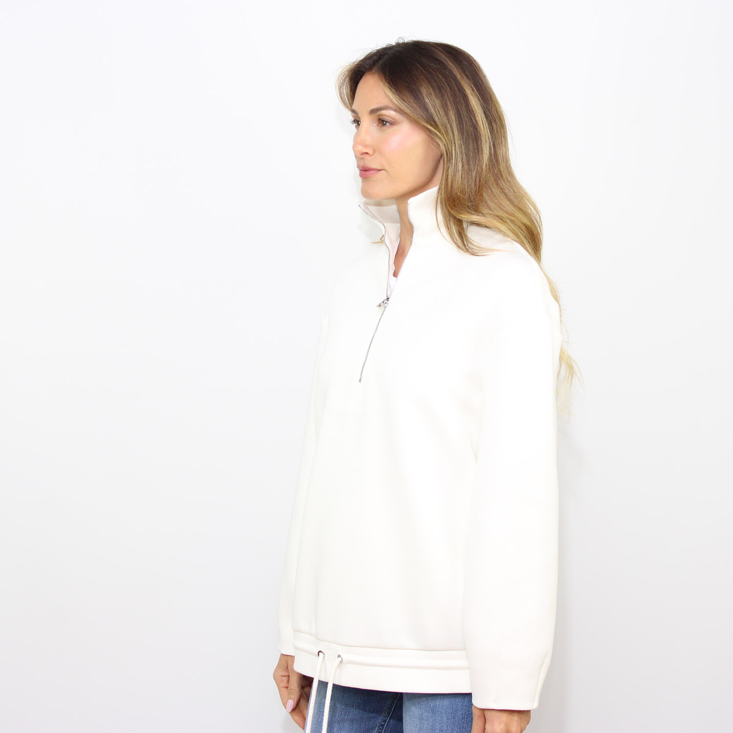 MMFelpa Madia mezza zip in doppio jersey tecnico bianco