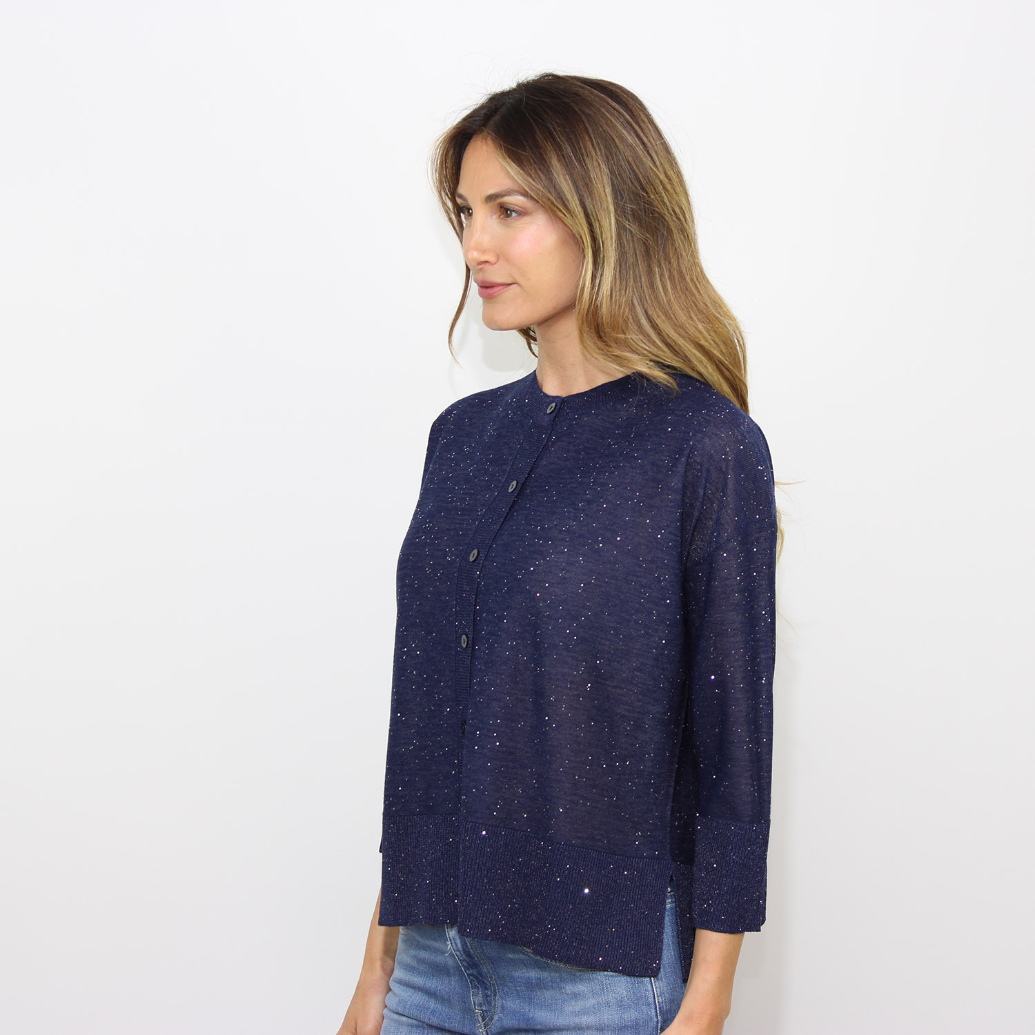 KangraMaglia scollo serafino con micropaillettes blu
