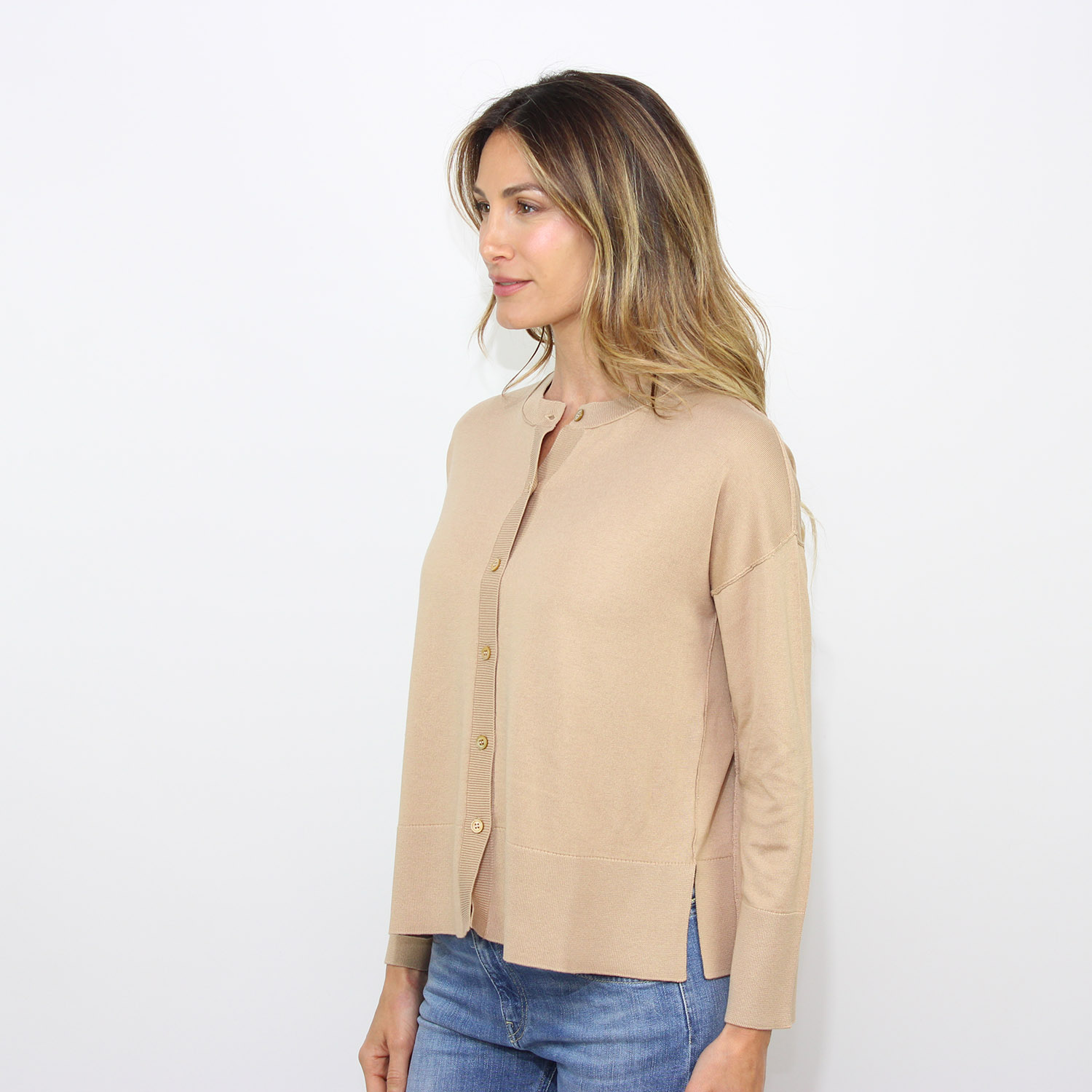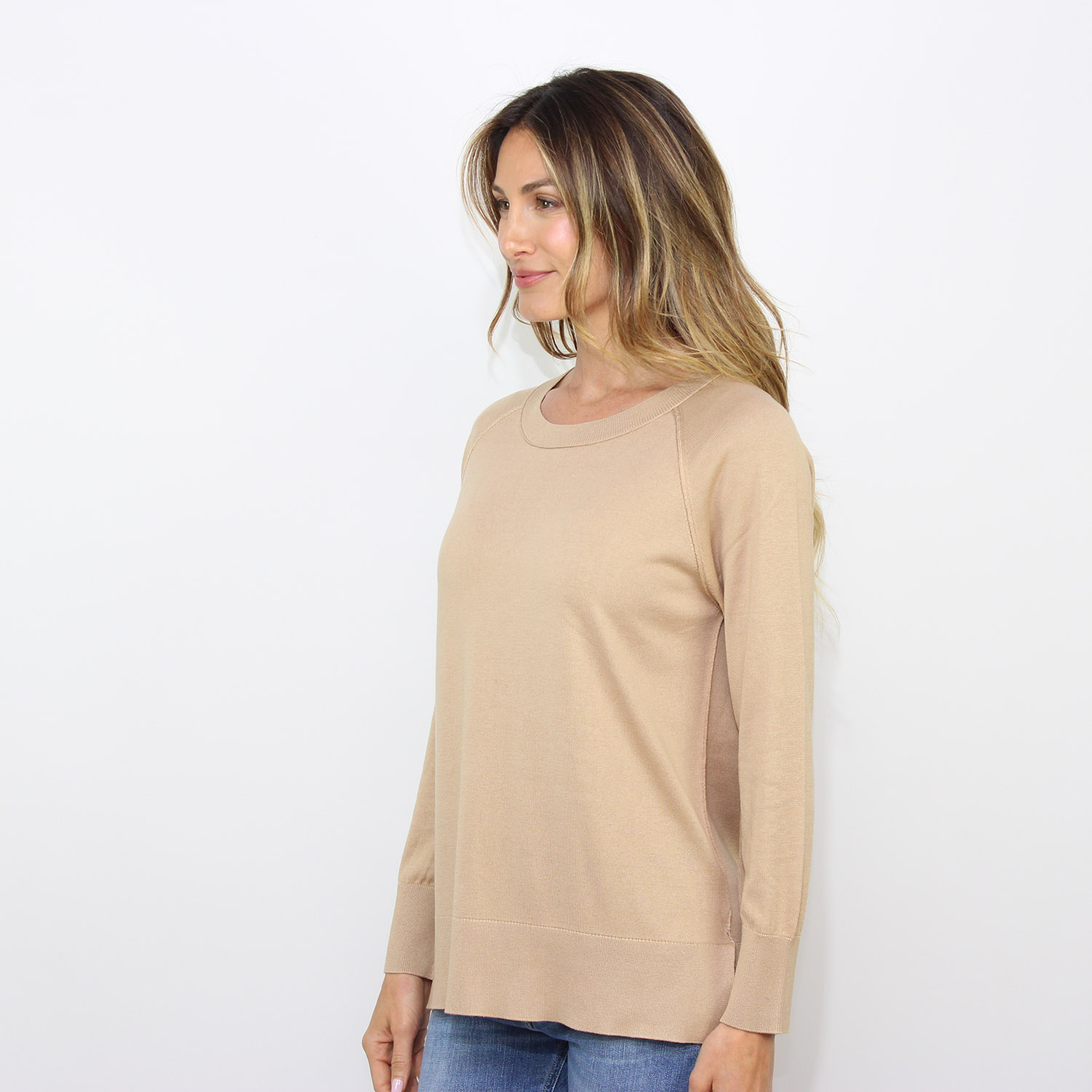 KangraMaglia raglan scollo barchetta in seta cotone cappuccino