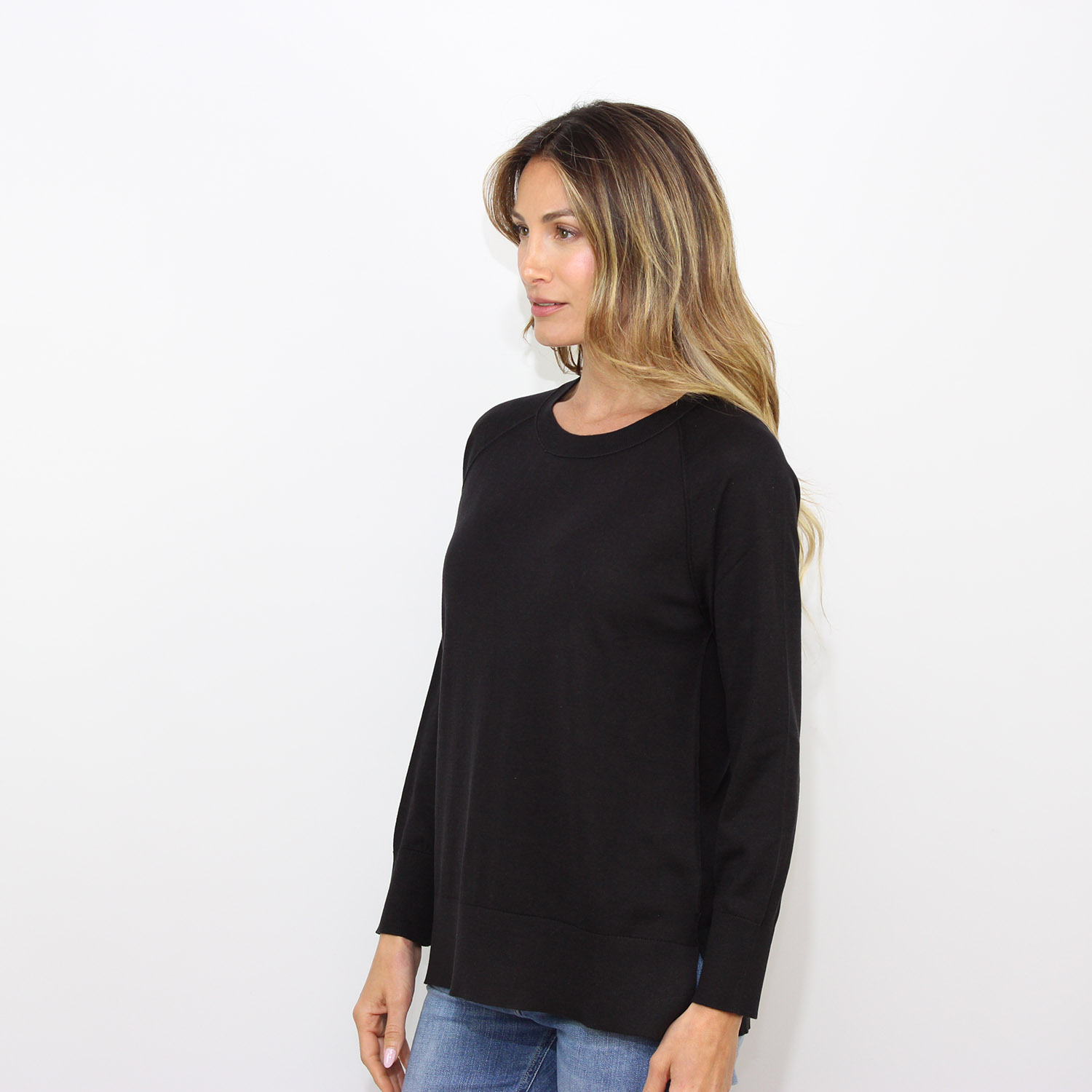 KangraMaglia raglan scollo barchetta in seta cotone nero
