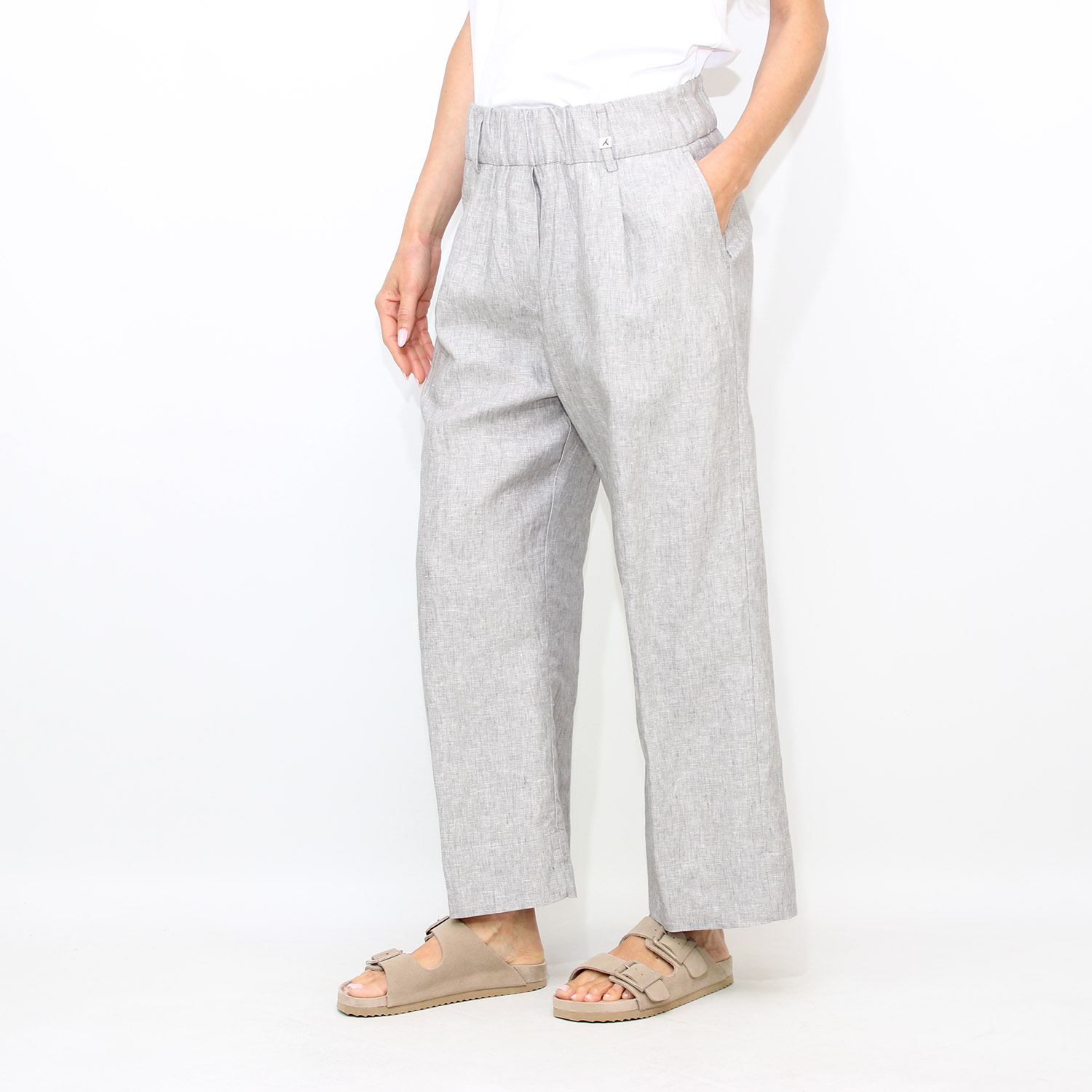 MythsPantalone con elastico in vita e pinces lino grigio
