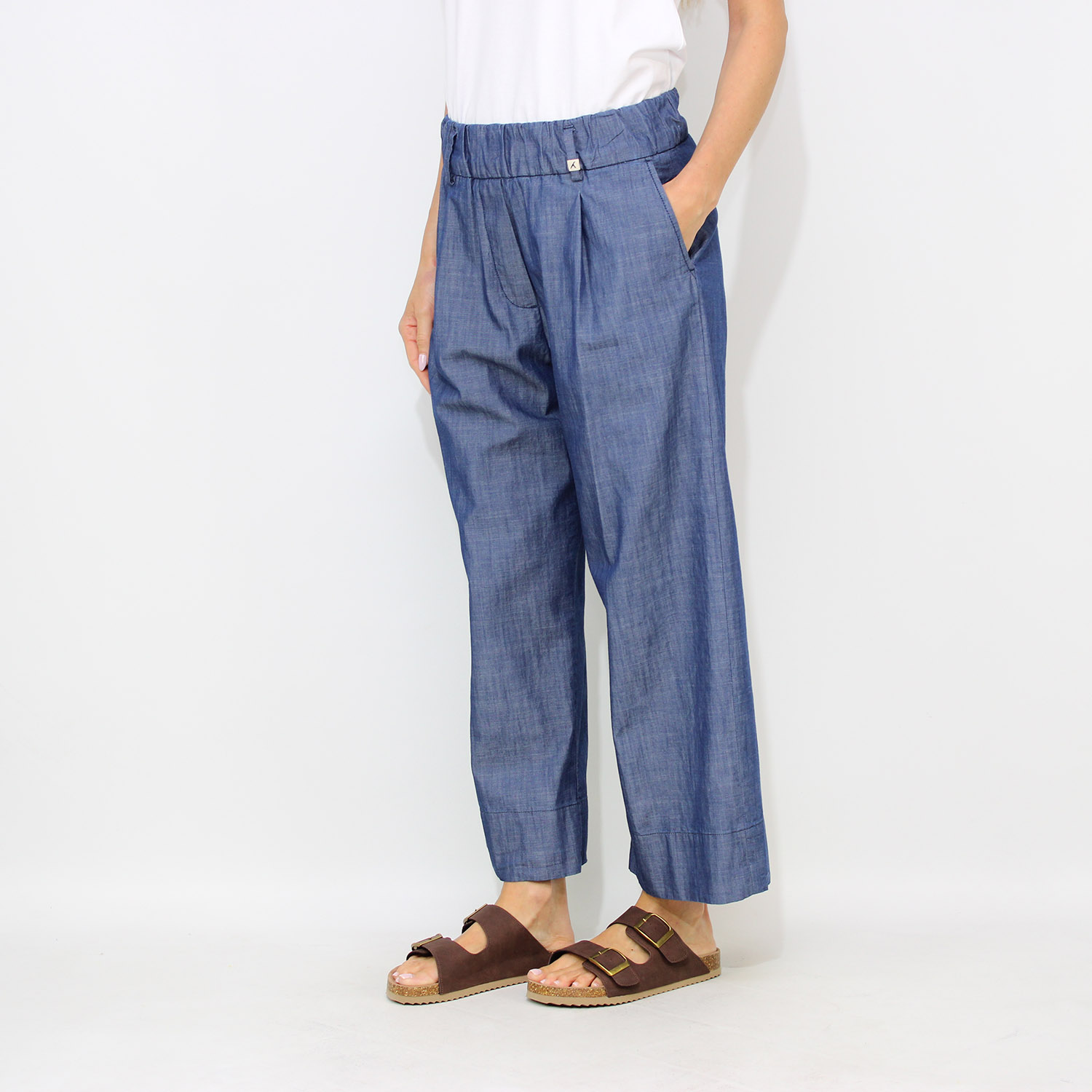 MythsPantalone con elastico in vita e pinces chambray lavaggio medio