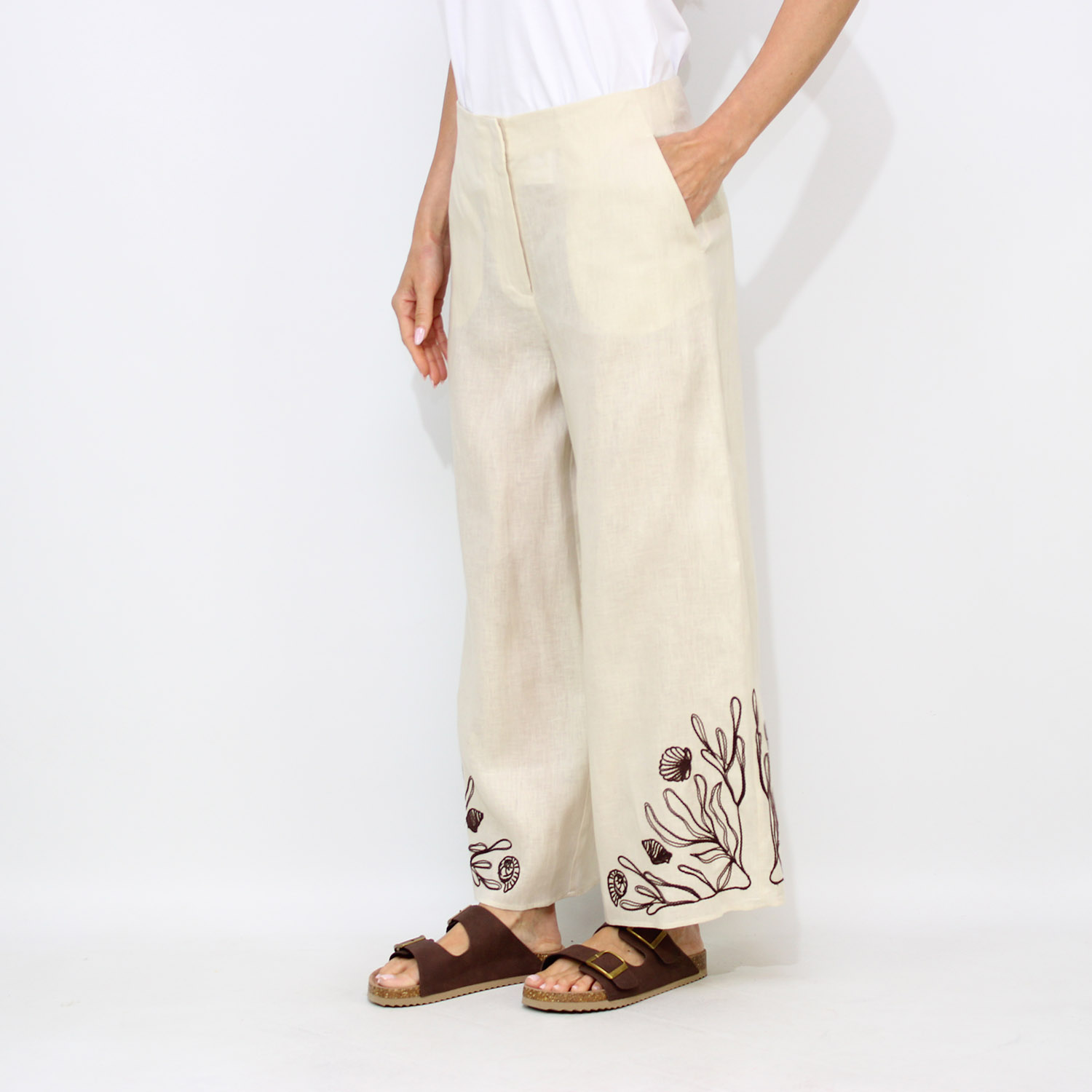 MarellaPantalone Dolce in lino con ricami panna