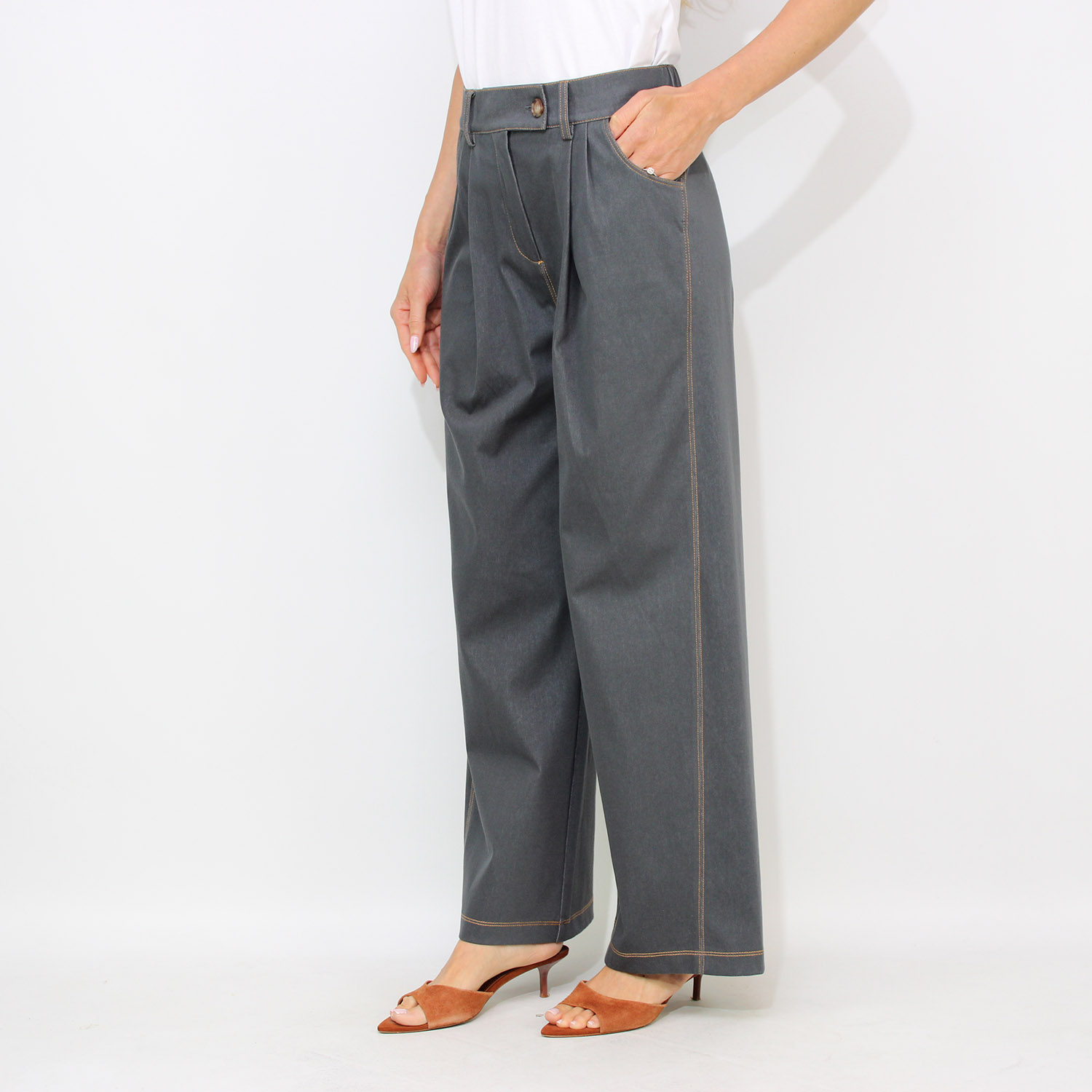 MM MaxMaraPantalone con pieghe Sarta in jersey effetto denim piombo