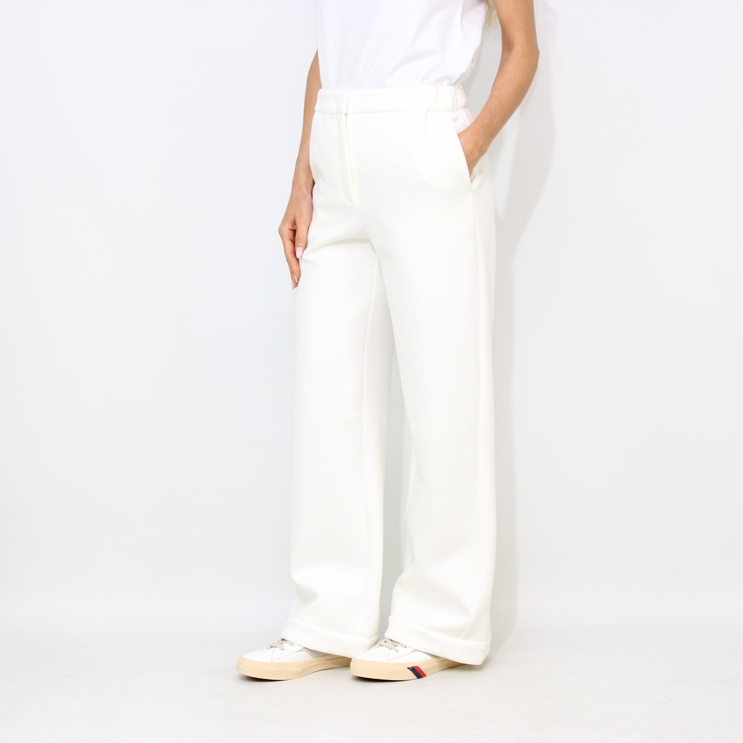MM MaxMaraPantalone Maroso in doppio jersey tecnico bianco