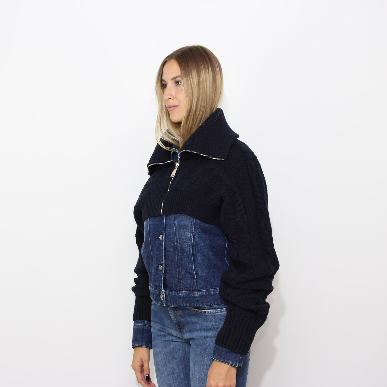 DondupGiubbo slim in denim fisso con bolerino in maglia removibile lavaggio medio pulito