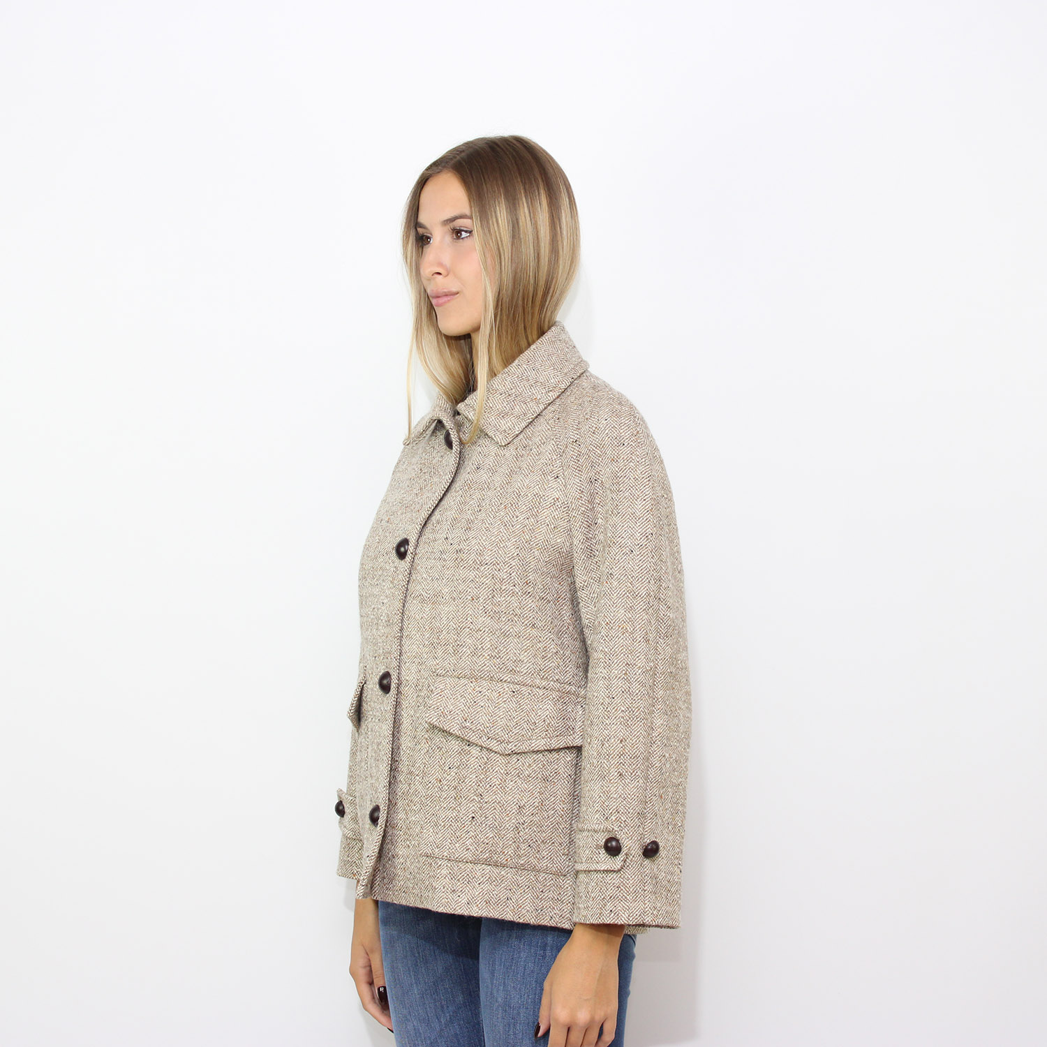 Circolo 1901Giubbo over pocketed in harringbone bottonato canapa