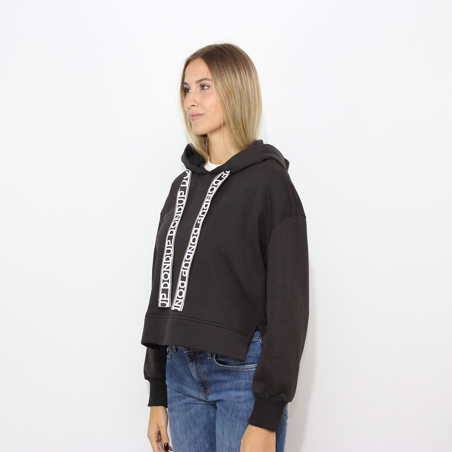 DondupFelpa con cappuccio regular in cotone nero lavagna