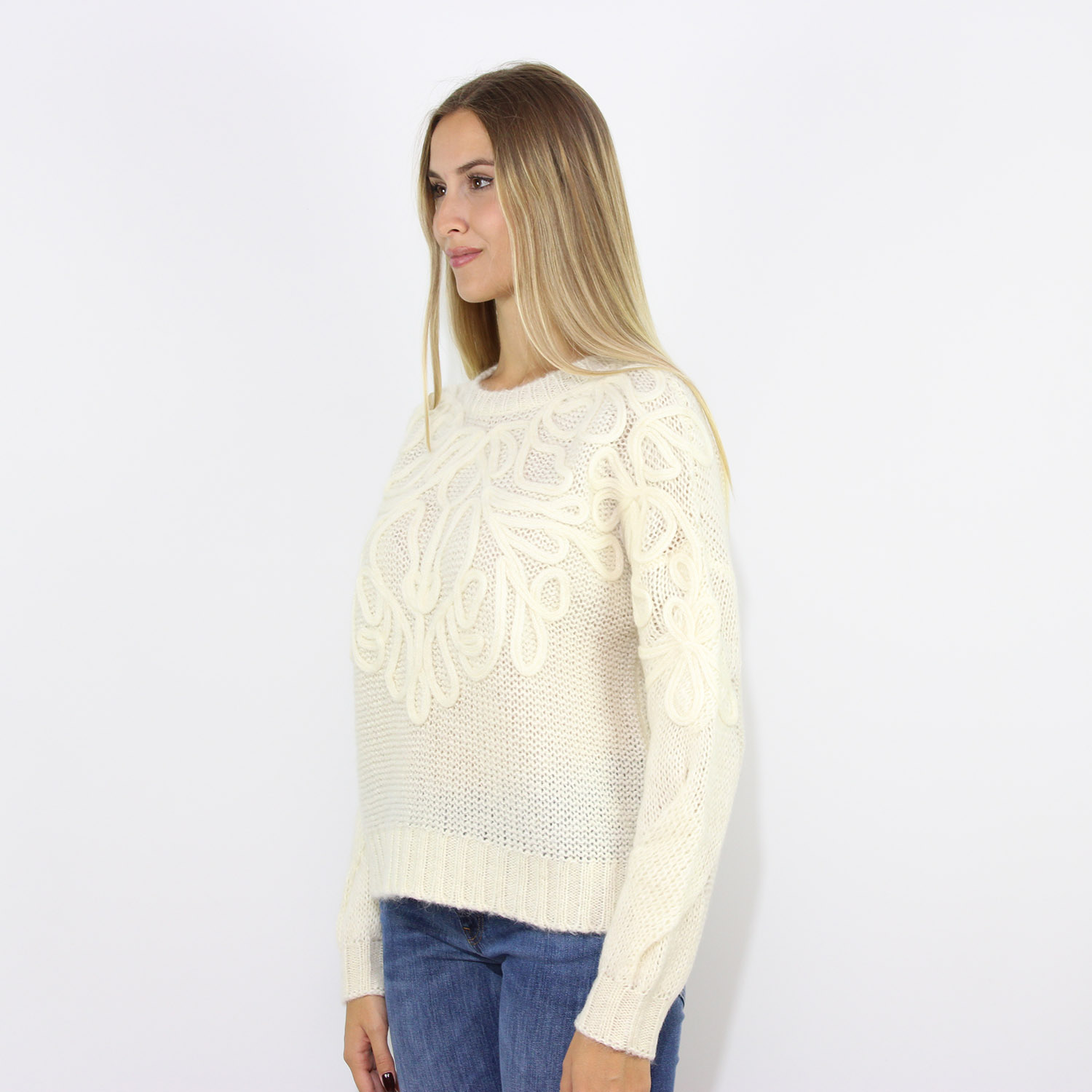 DondupMaglia girocollo over in lana mohair con ricamo latte