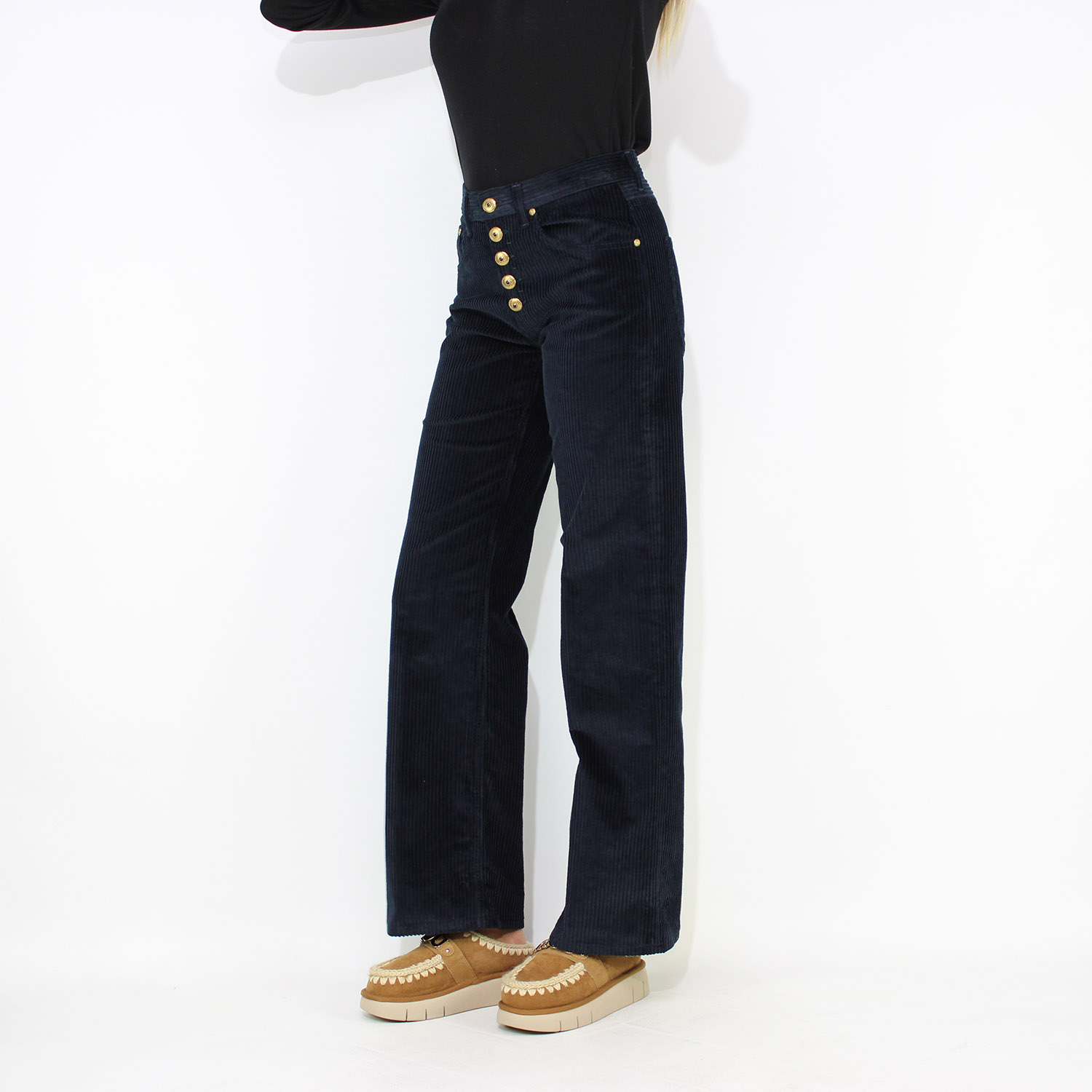 DondupPantalone wide leg Jacklin in velluto stretch a coste blu navy