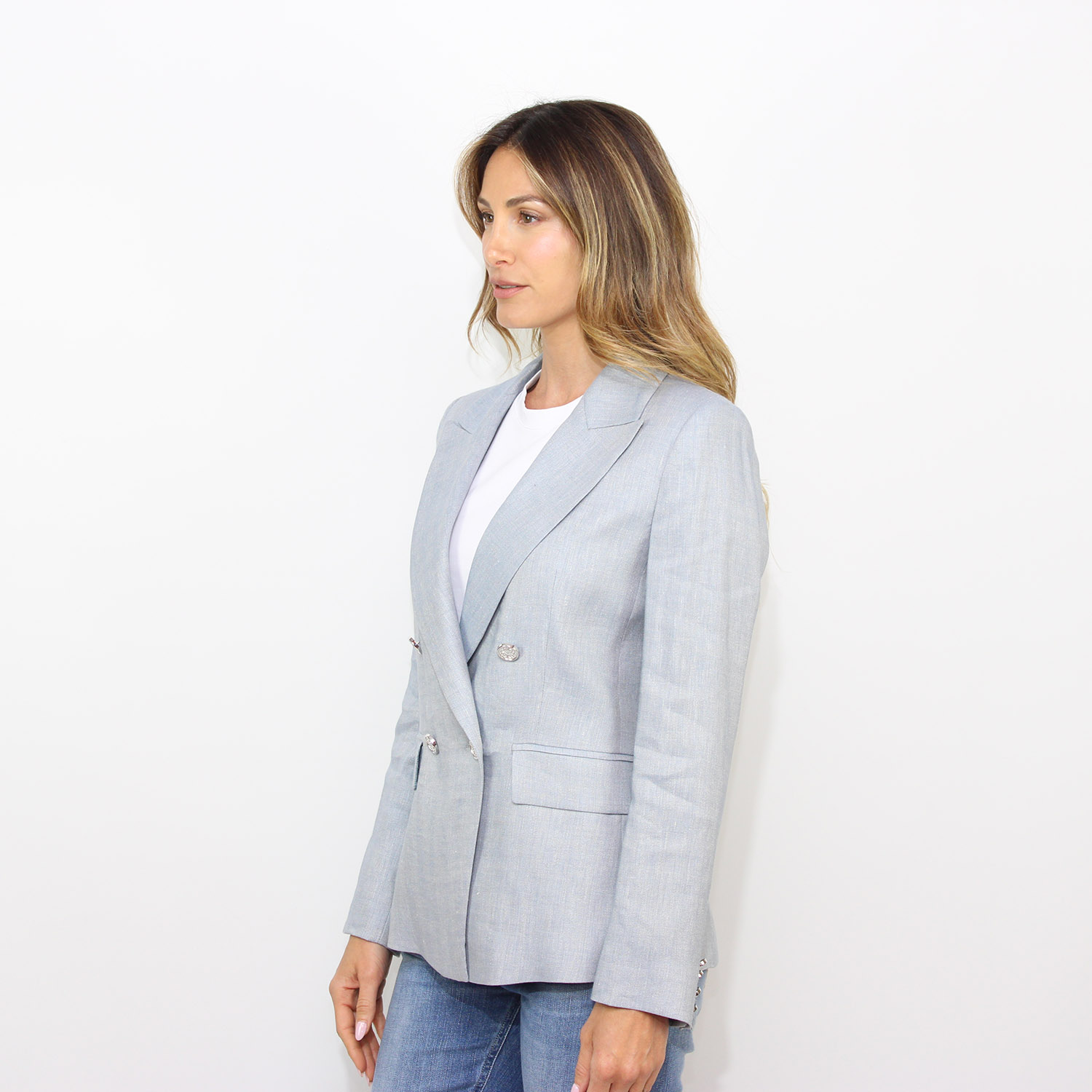 MarellaBlazer Bussola doppiopetto in chevron di misto lino azzurro