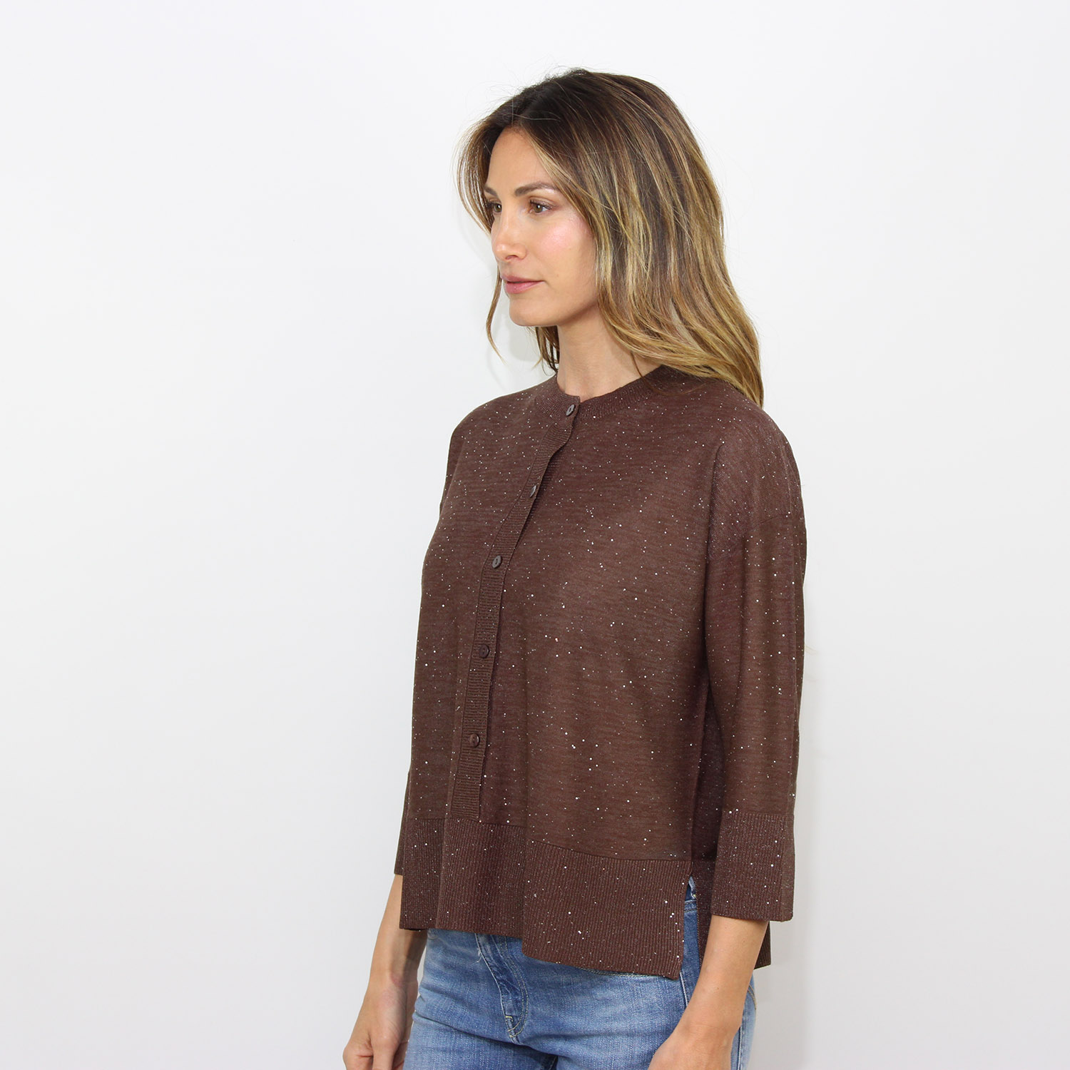 KangraMaglia scollo serafino con micropaillettes cioccolato