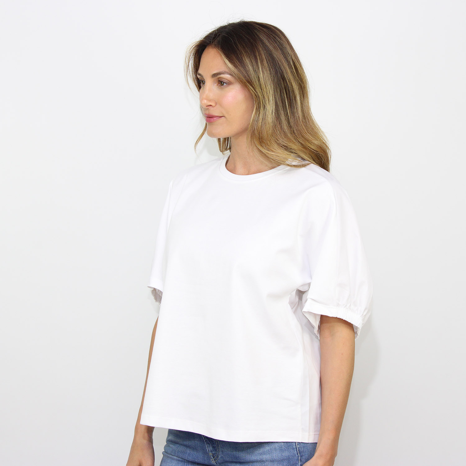 MMT-shirt Cellula maniche a palloncino bianco ottico