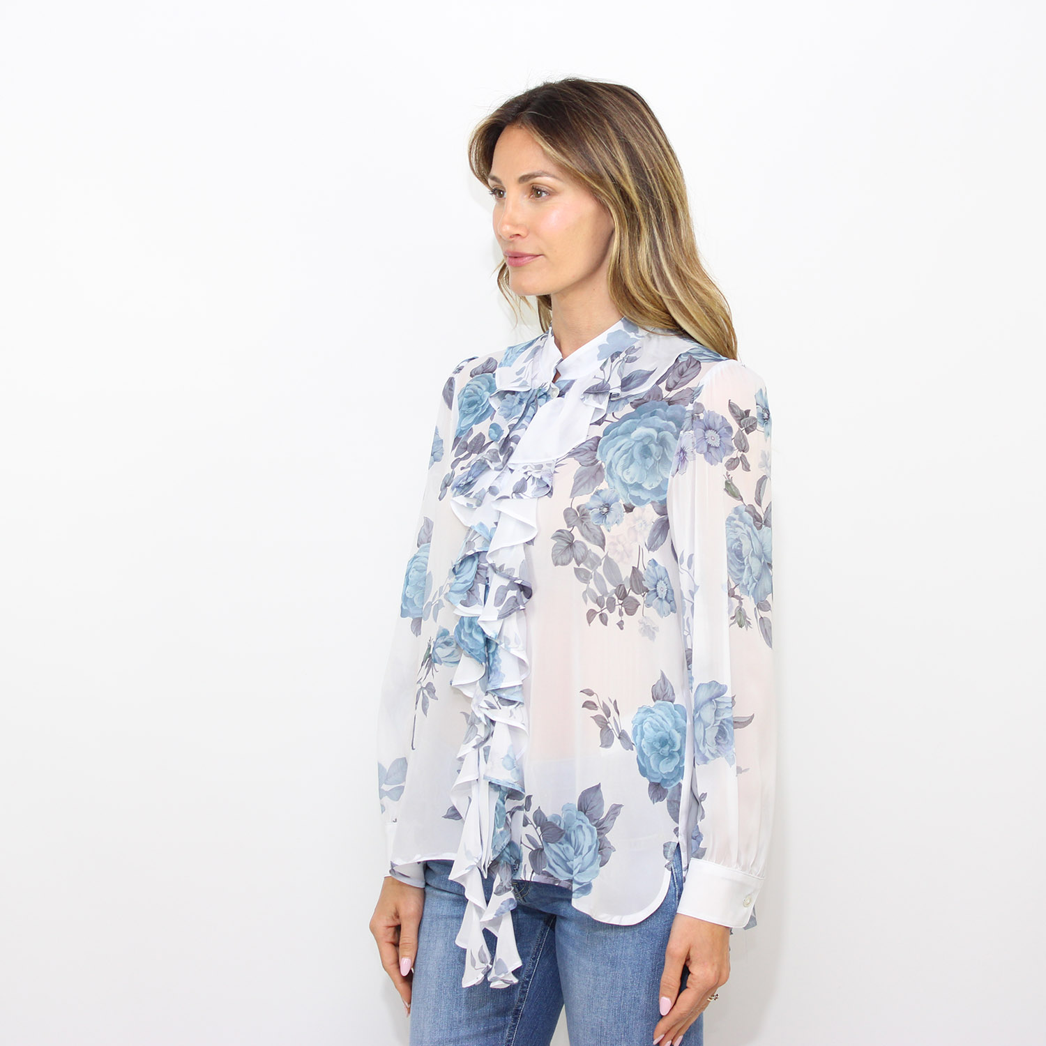MarellaCamicia Canapa in georgette con rouche bianco fiori azzurri