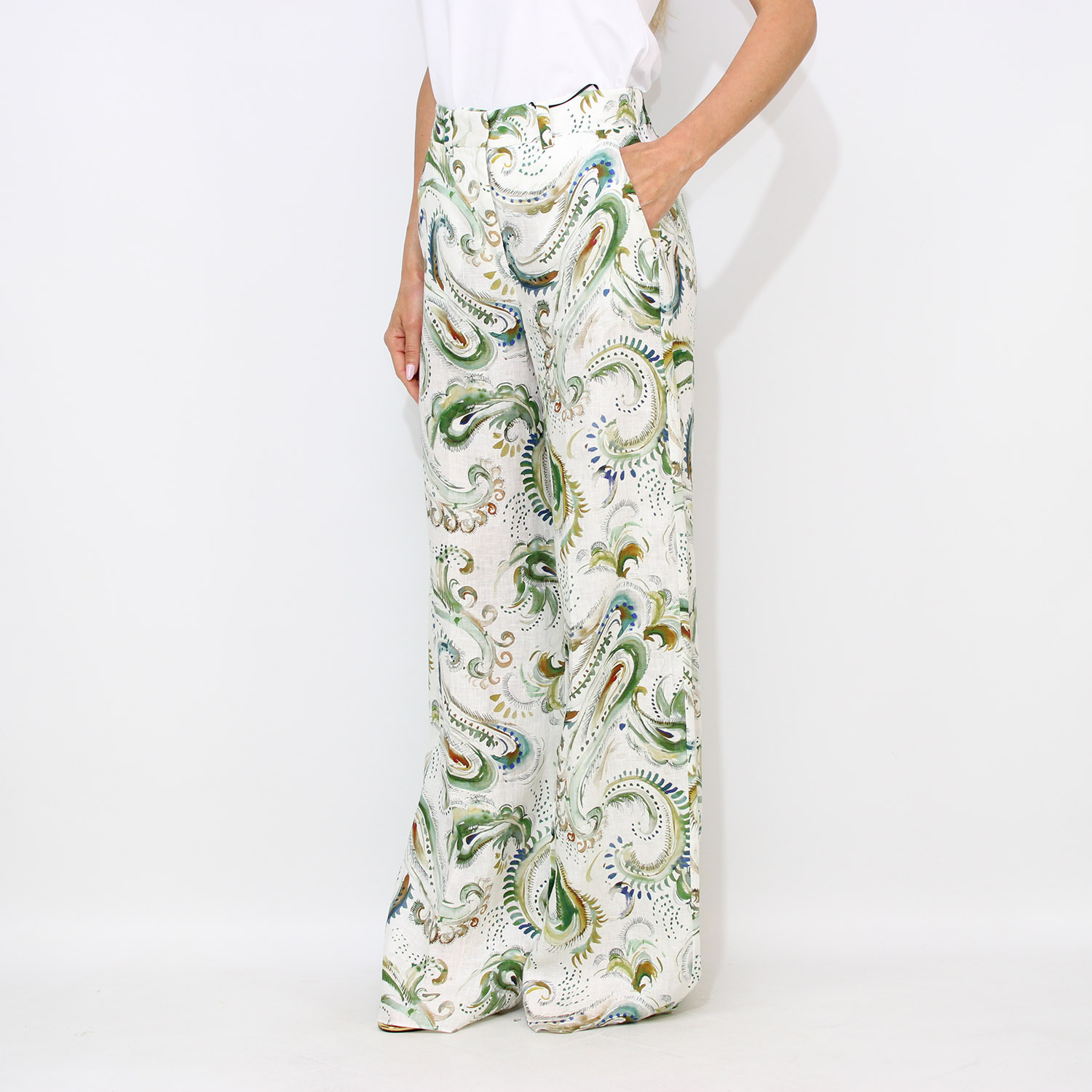 MarellaPantalone a palazzo Domino in lino stampato bianco ottico