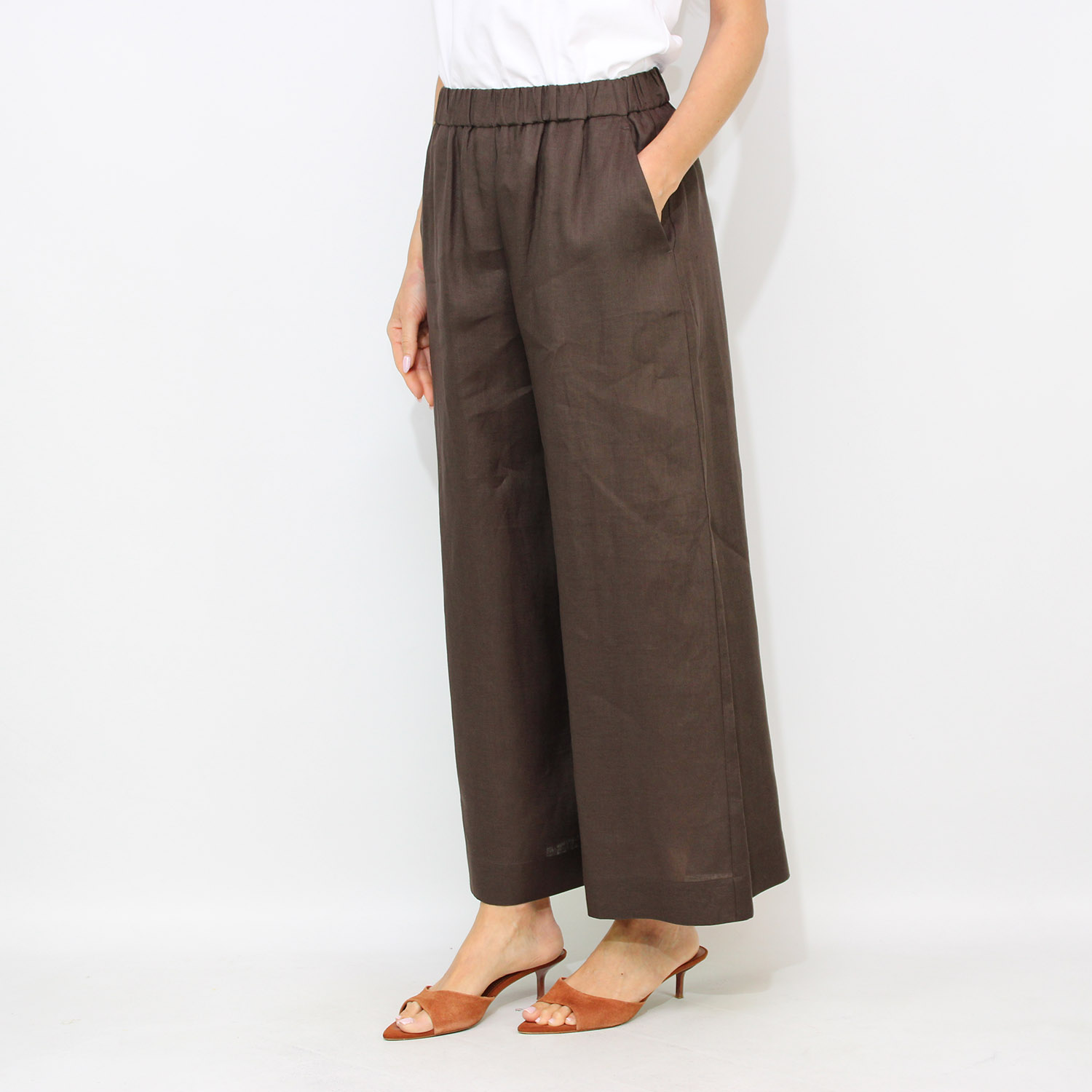 MM MaxMaraPantalone Canneti in lino lavato con vita elasticizzata testa di moro