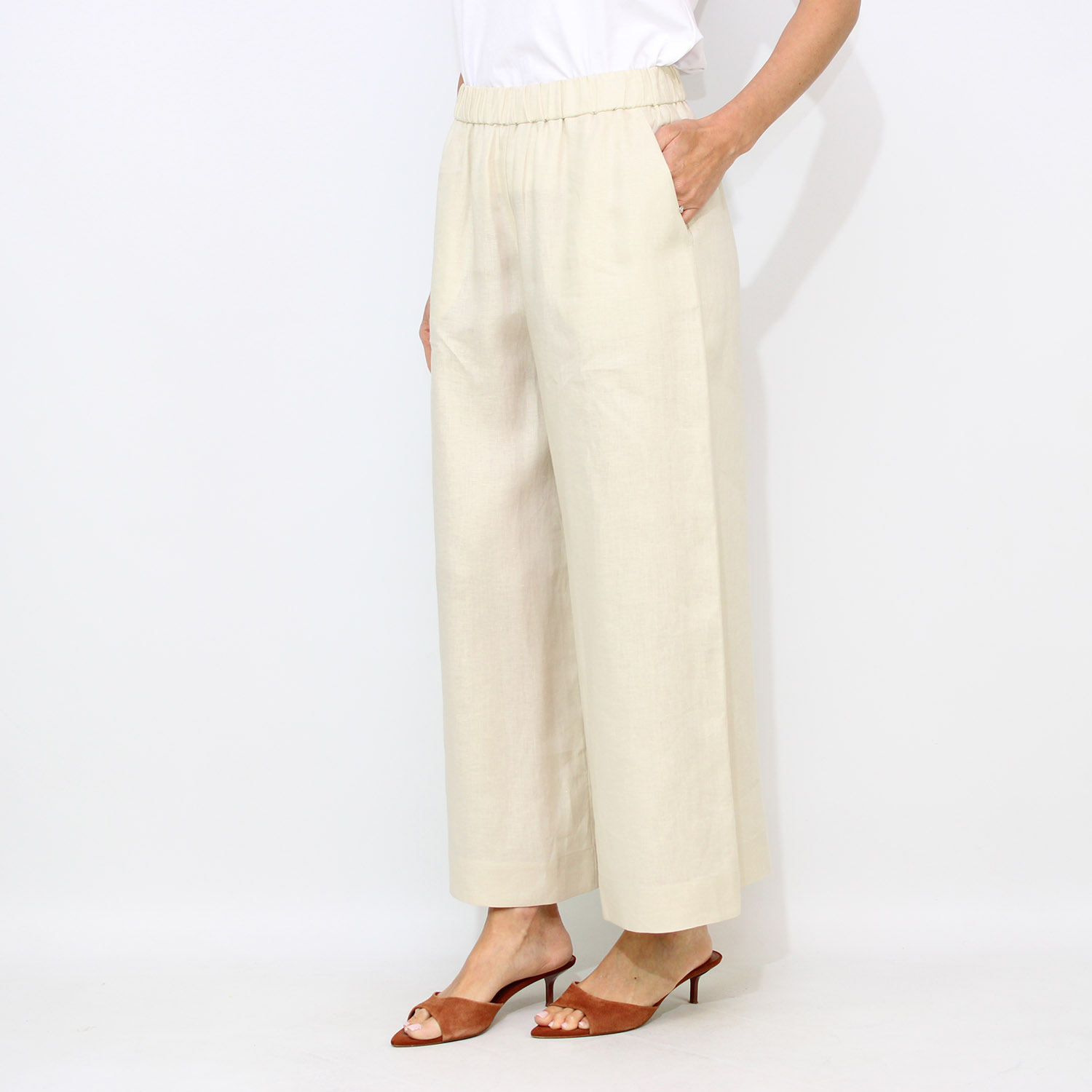MMPantalone Canneti in lino lavato con vita elasticizzata latte