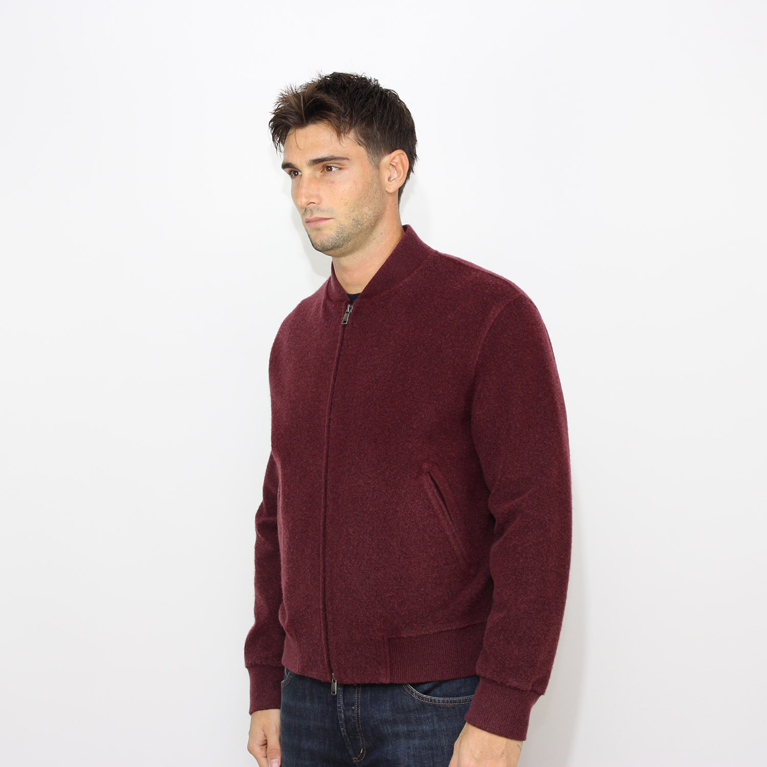 Bomber in jersey di misto lana bouclé frosted bourgogne