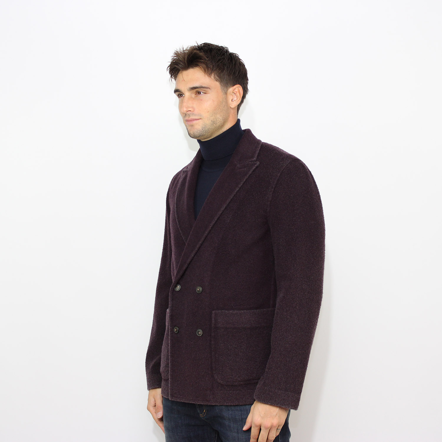 Giacca doppiopetto in casentino misto lana tinto capo bordeaux