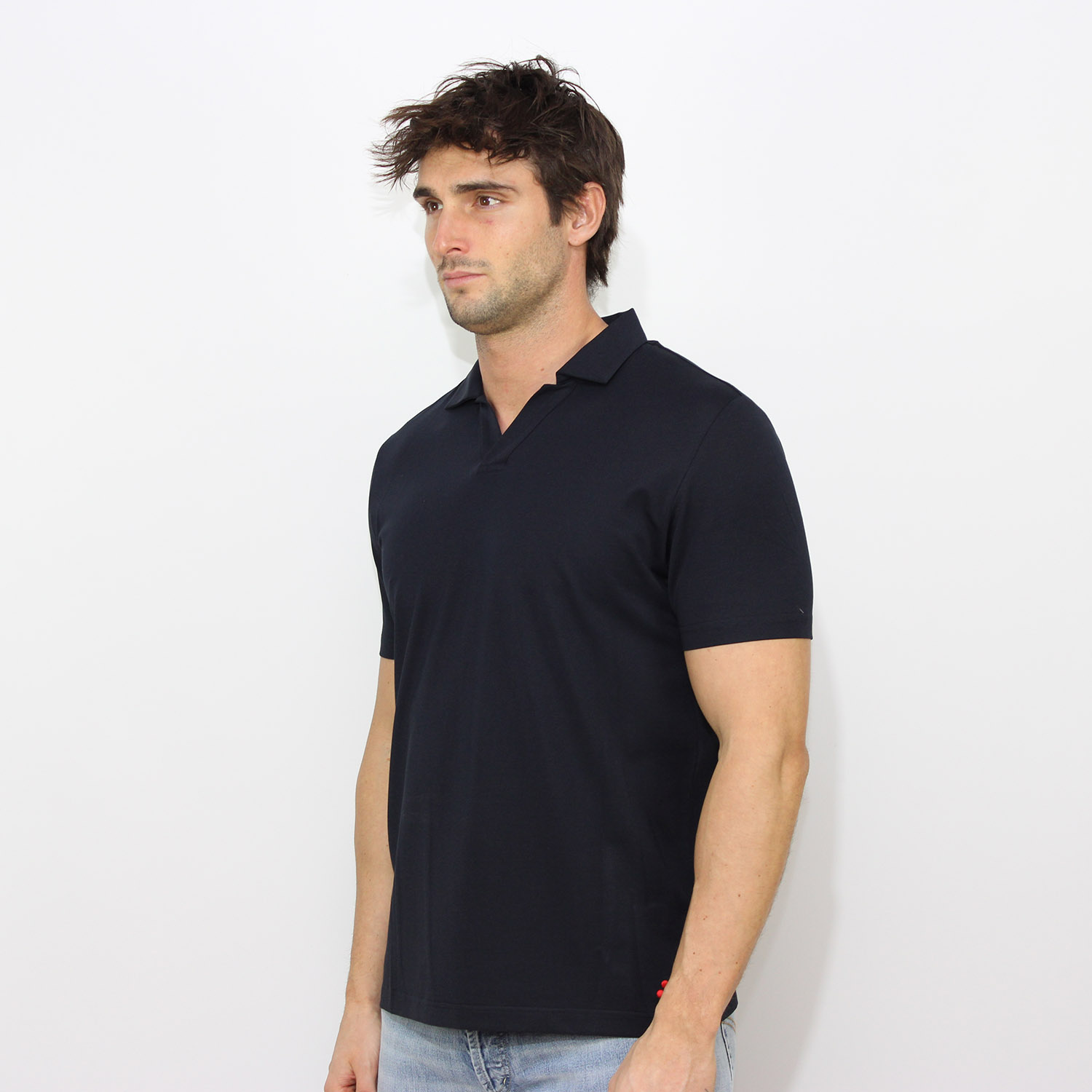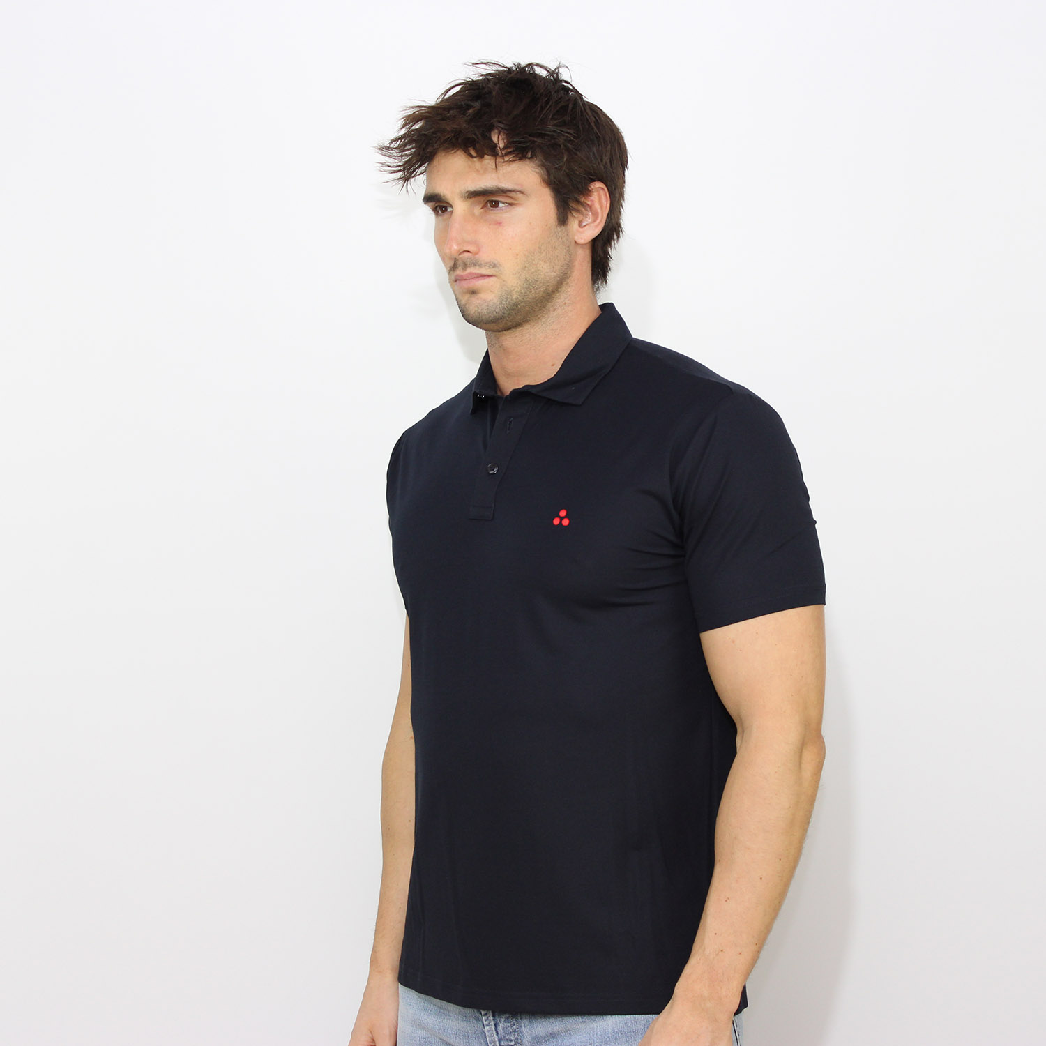PeutereyPolo New Helgo in piquet stretch di cotone e seta blu grafite