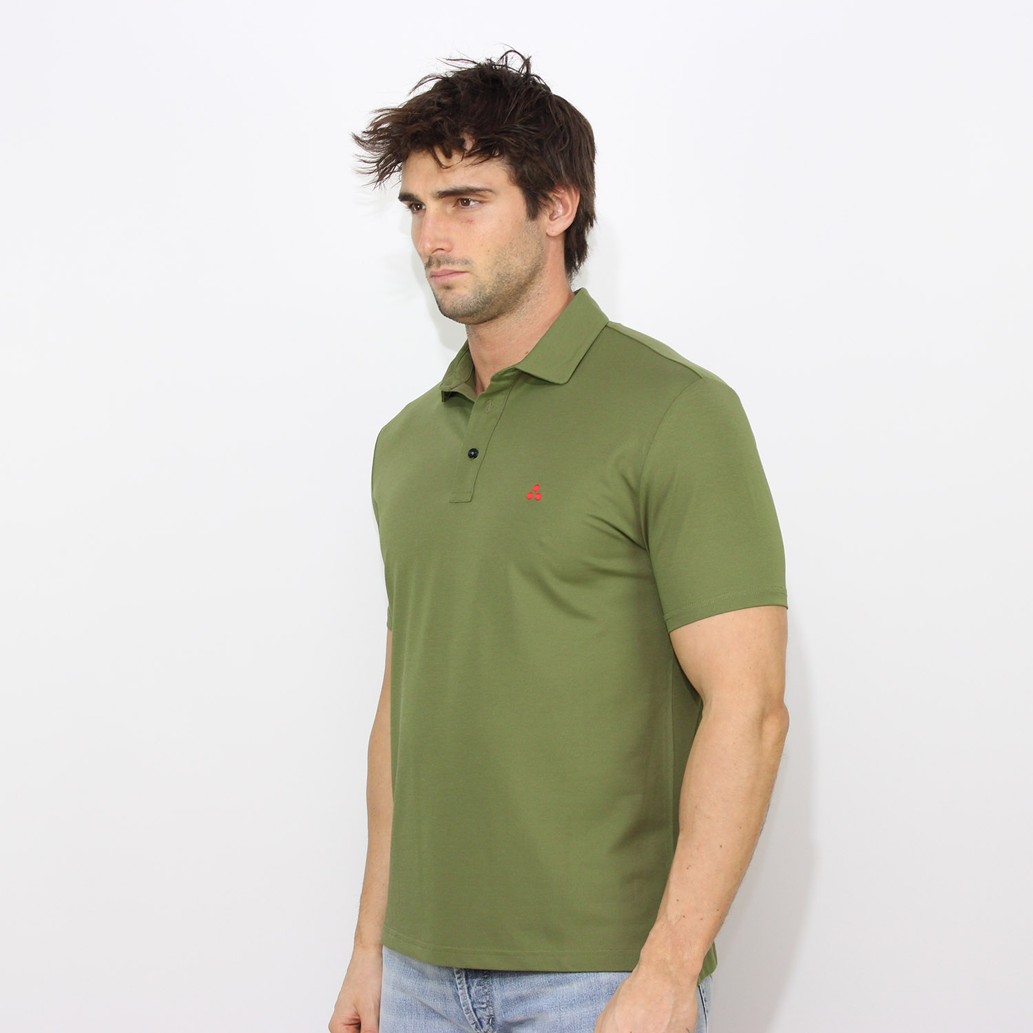 PeutereyPolo Mezzola in piquet stretch di cotone e seta verde effimera