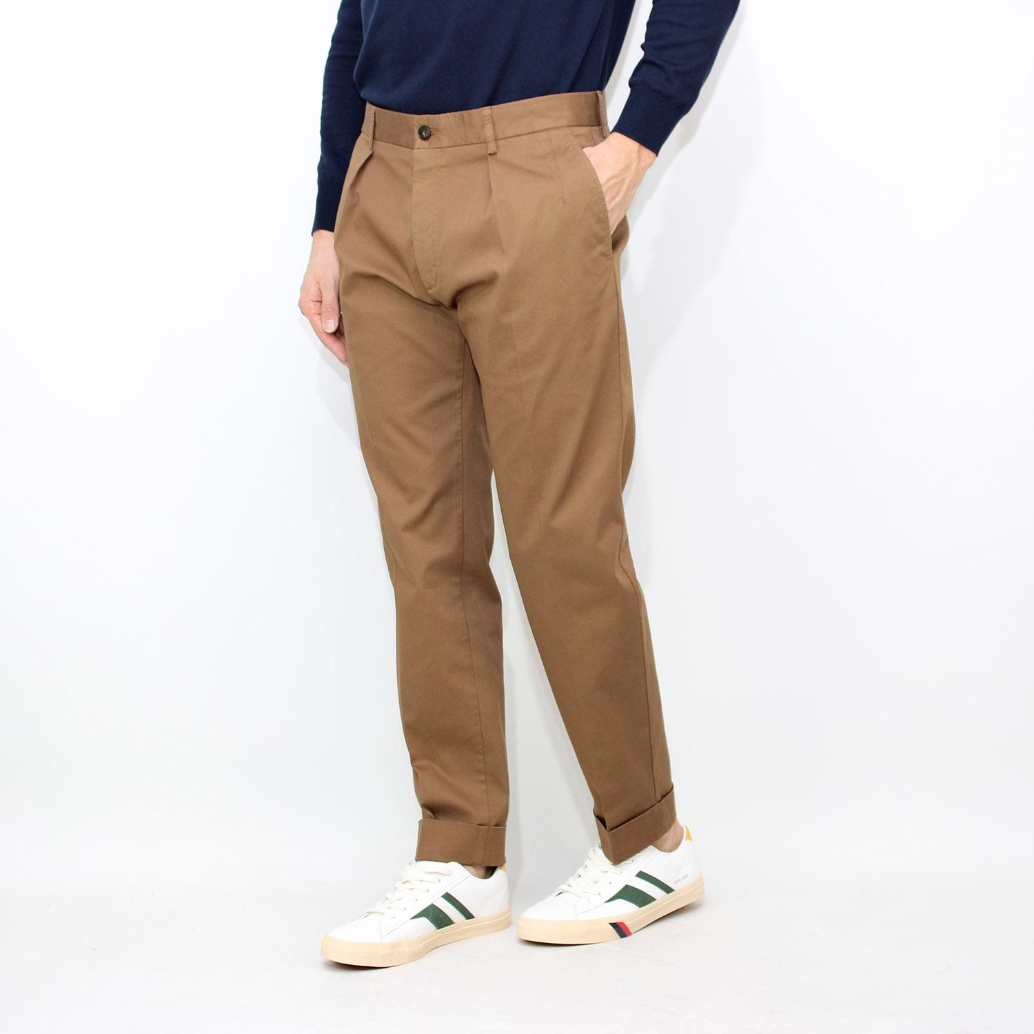 IncotexPantalone tapered fit con pinces in cannetè stretch tabacco