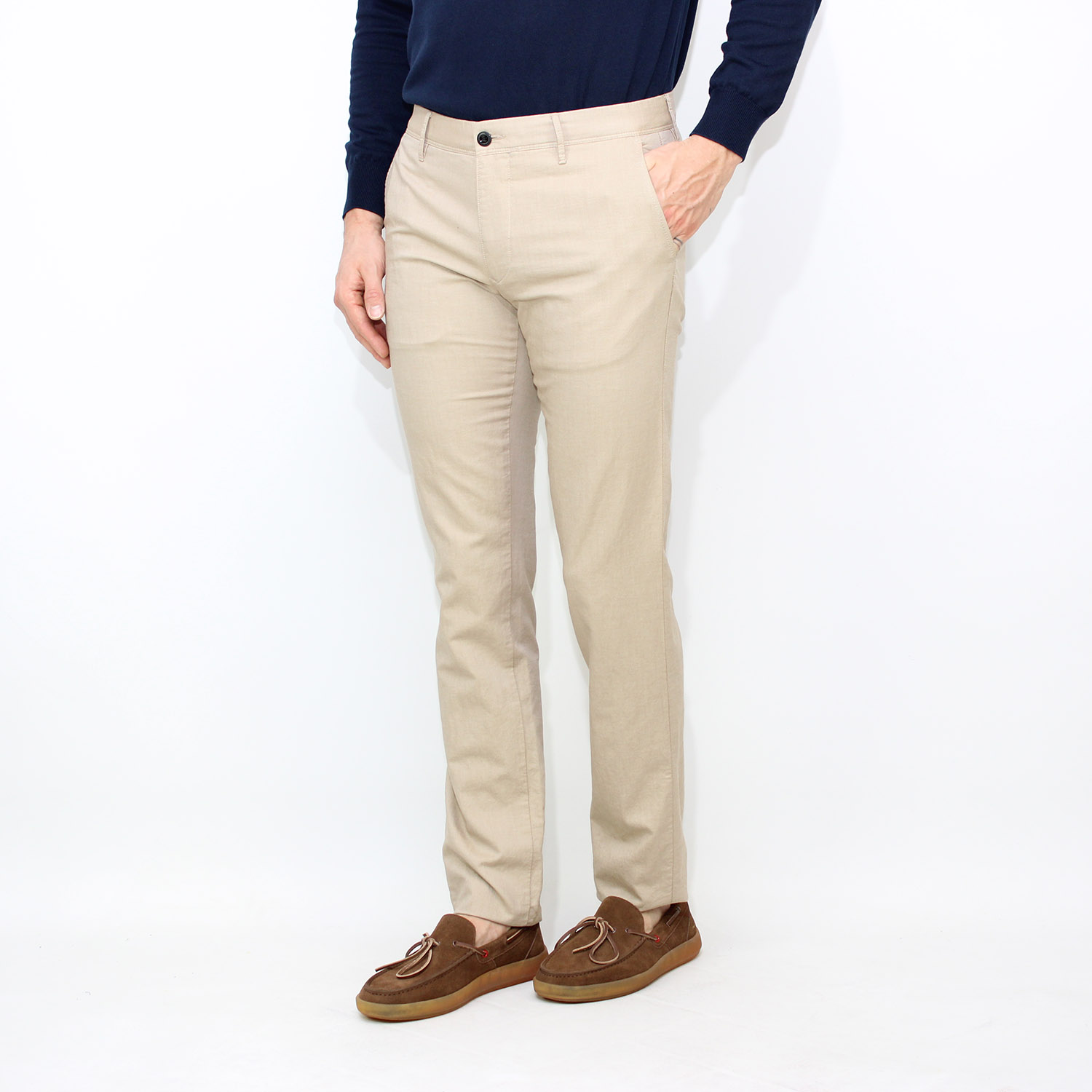 IncotexPantalone slim fit in tessuto two tone tinto filo stretch sabbia