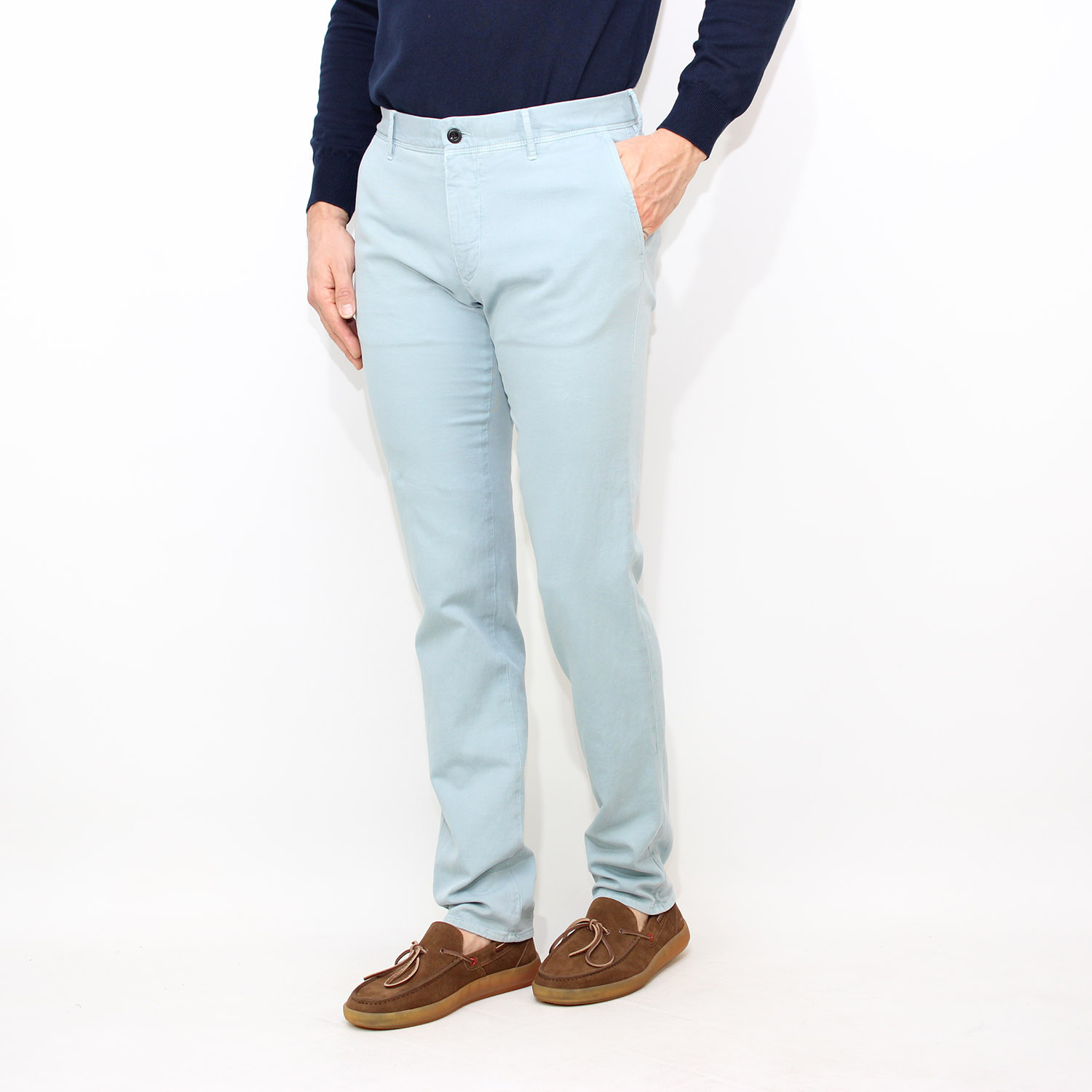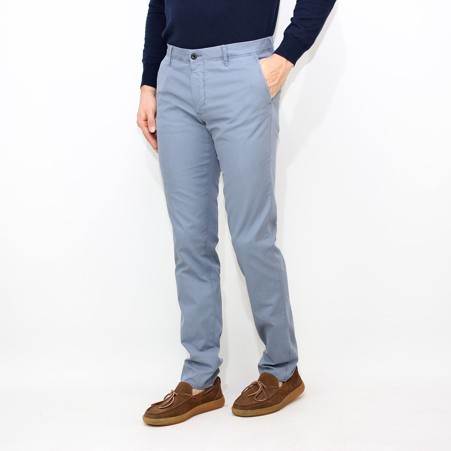 IncotexPantalone slim fit in microarmatura di cotone stretch avio