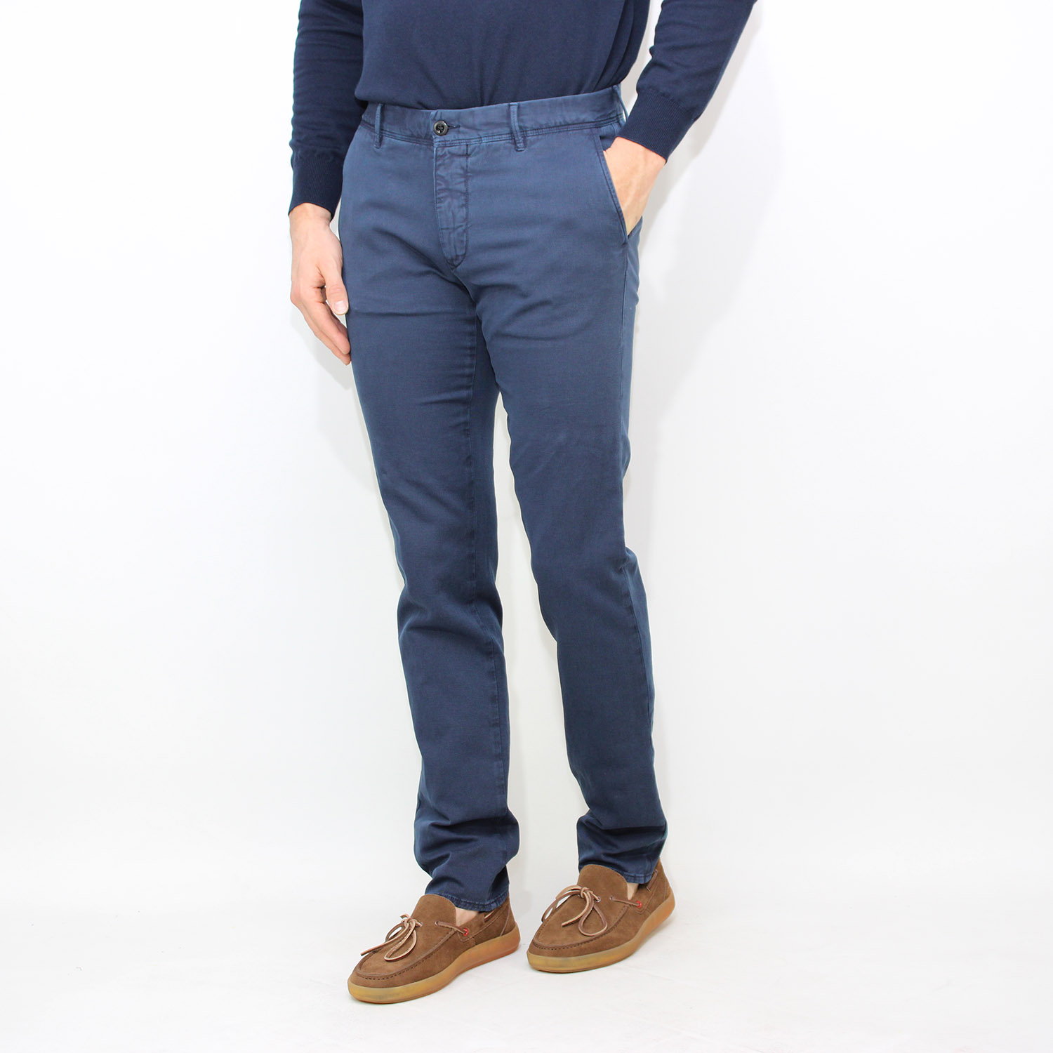 IncotexPantalone slim fit in cotone e lino stretch blu