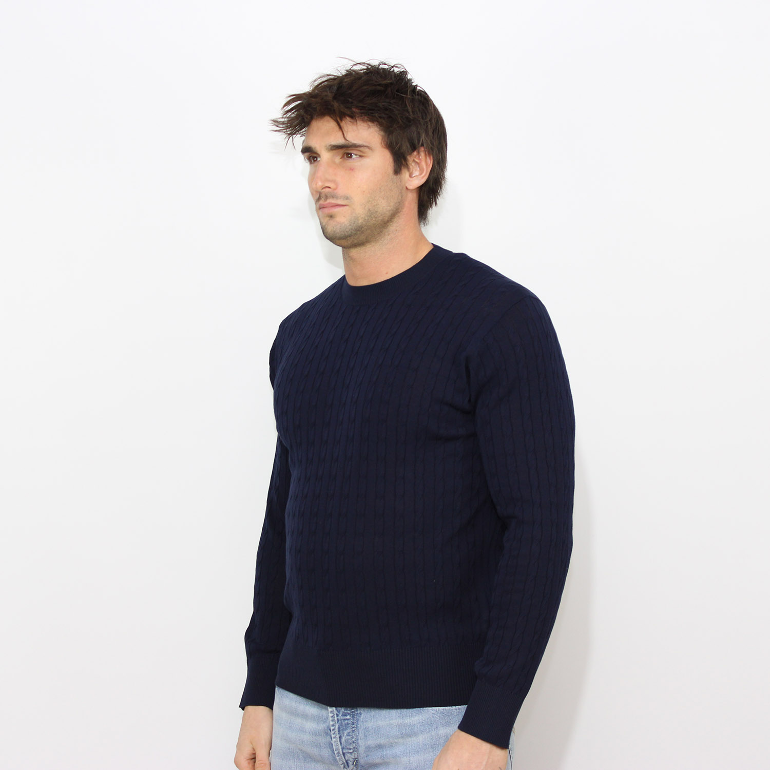 KangraMaglia girocollo in cotone a trecce e coste blu