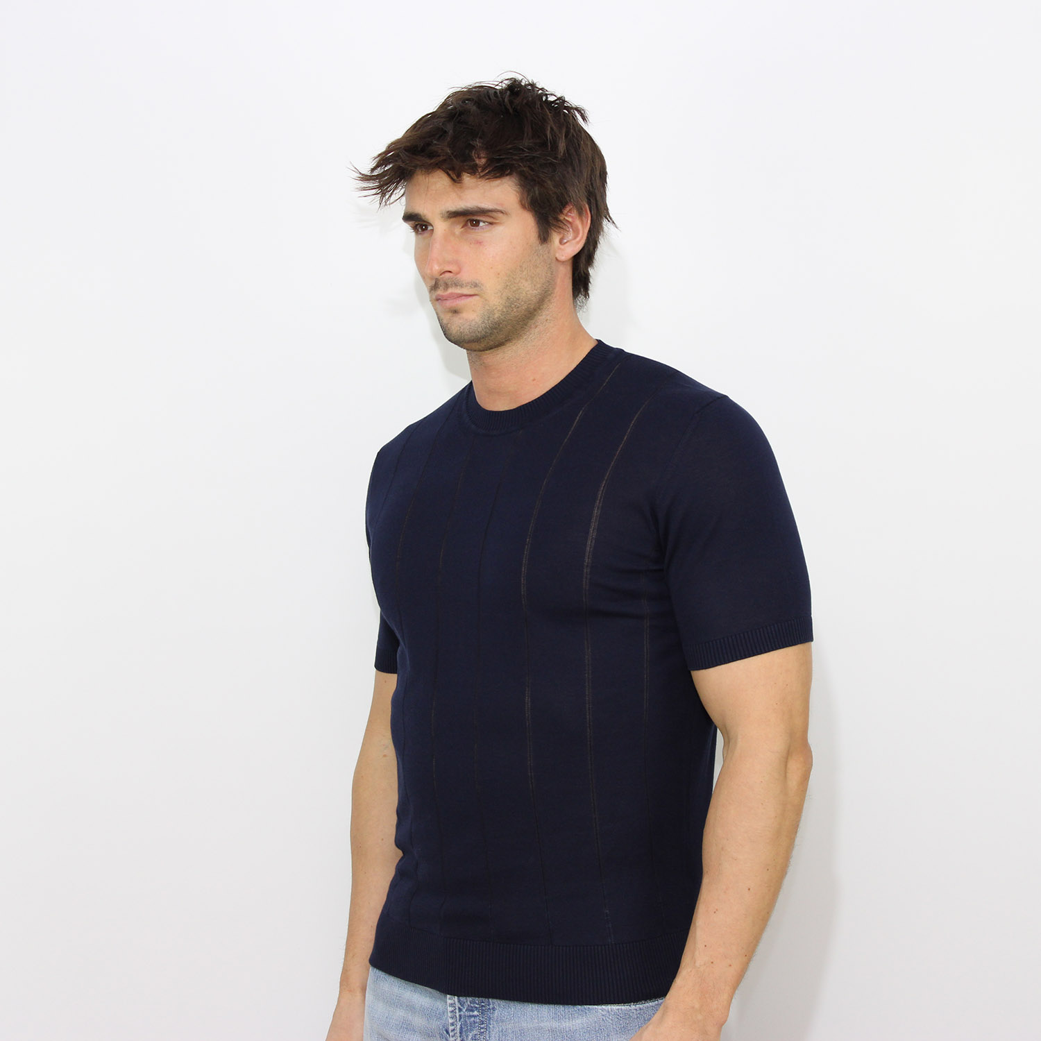 KangraT-shirt in filo a coste piatte blu