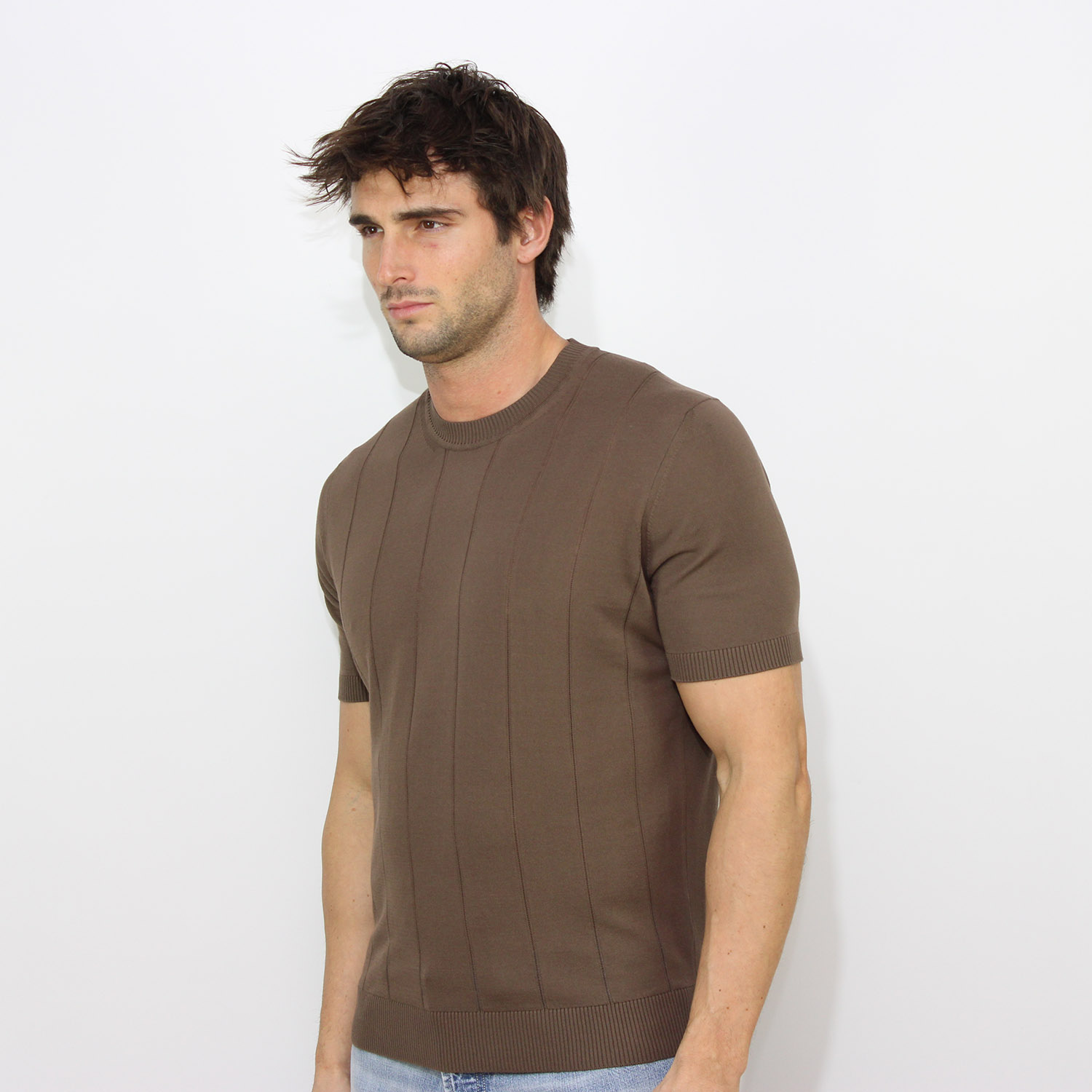 KangraT-shirt in filo a coste piatte caffè