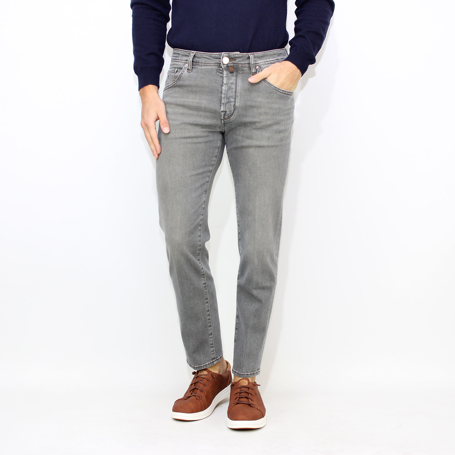 Jacob CohënJeans Scott cropped in denim super stretch grigio salpa marrone