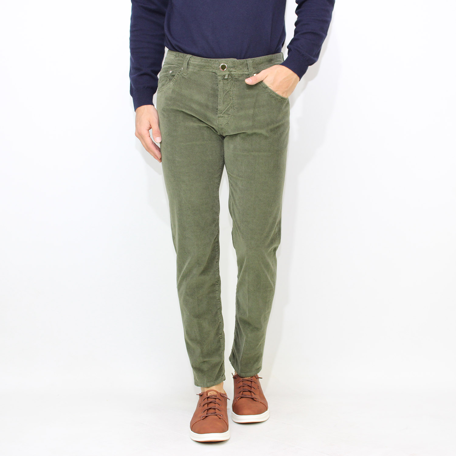 Jacob CohënPantalone Scott cropped in velluto a coste stretch di cotone e modal verdone