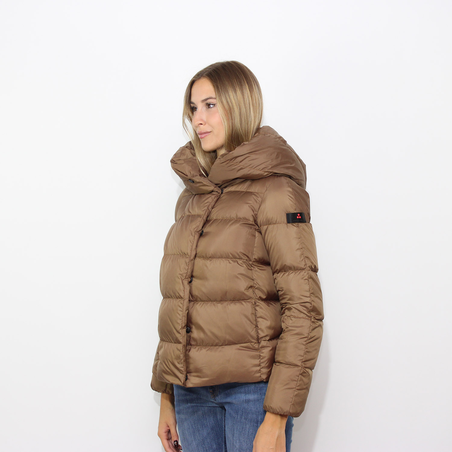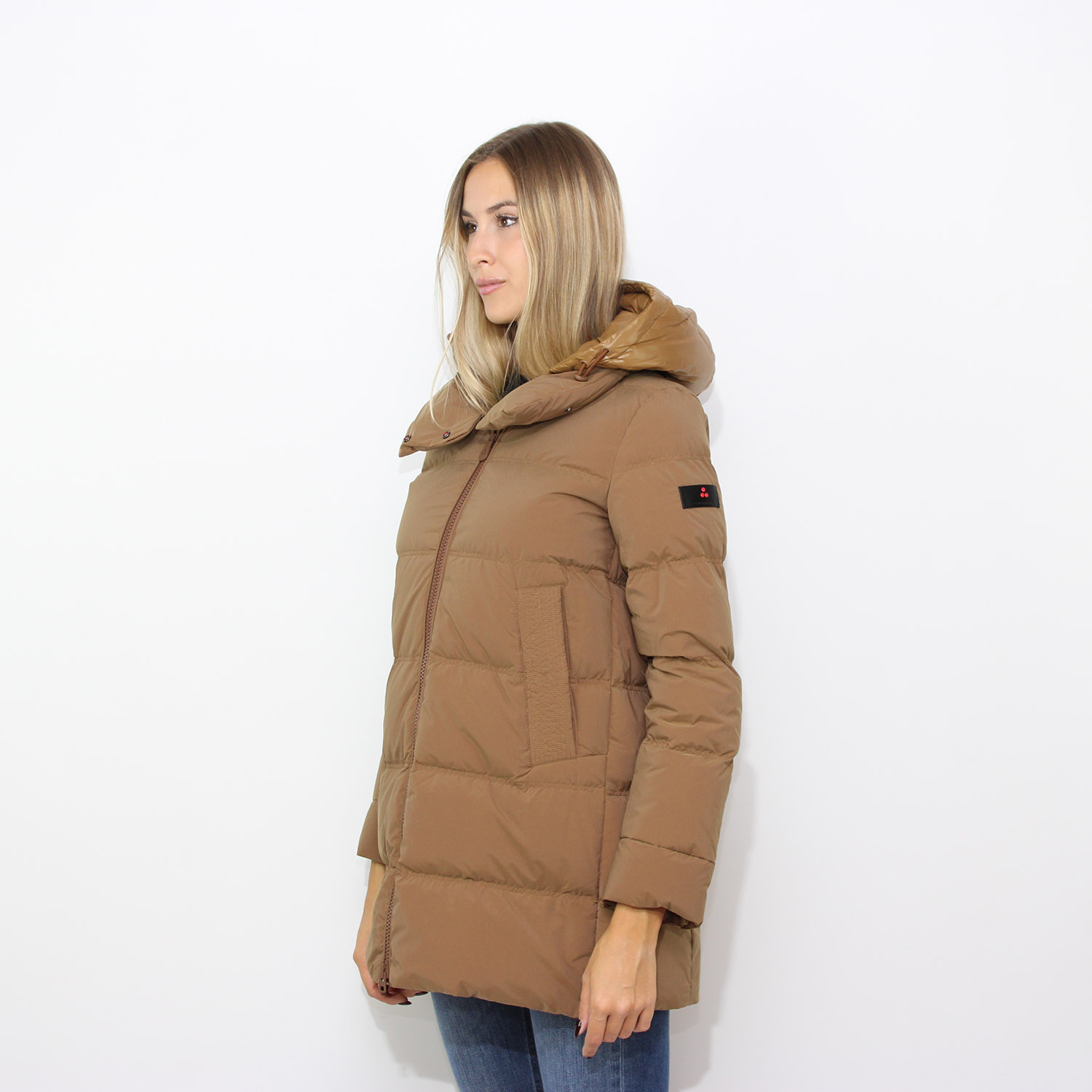 PeutereyPiumino Tucano in tessuto riciclato con cappuccio nocciola
