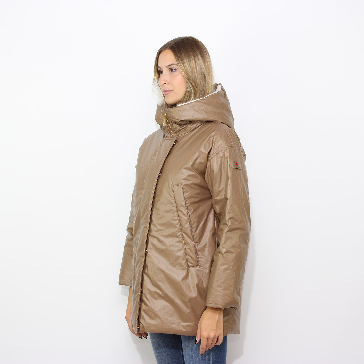 PeutereyPiumino Unix con cappuccio in contrasto di materiale nocciola