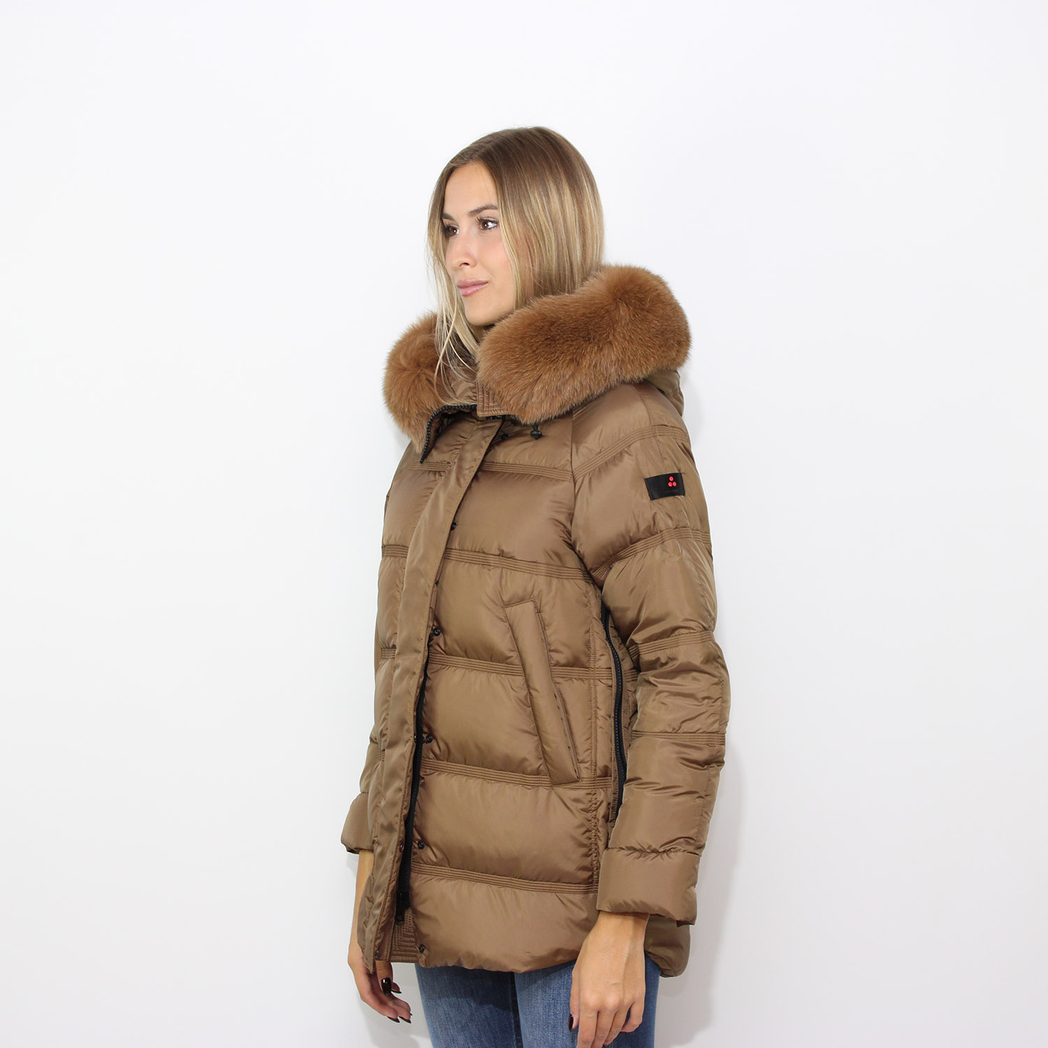 PeutereyPiumino Takan in nylon superlight con bordo pelliccia nocciola
