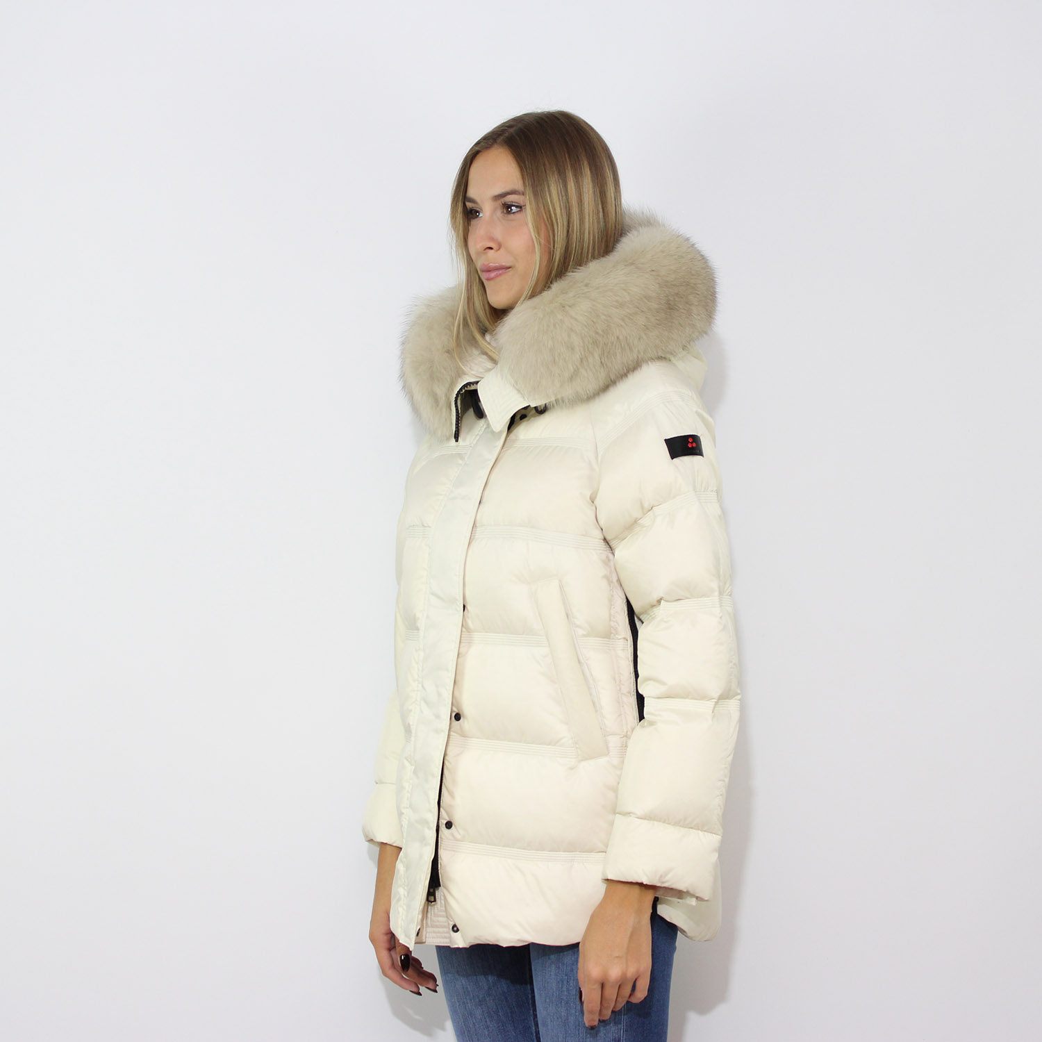 PeutereyPiumino Takan in nylon superlight con bordo pelliccia avorio